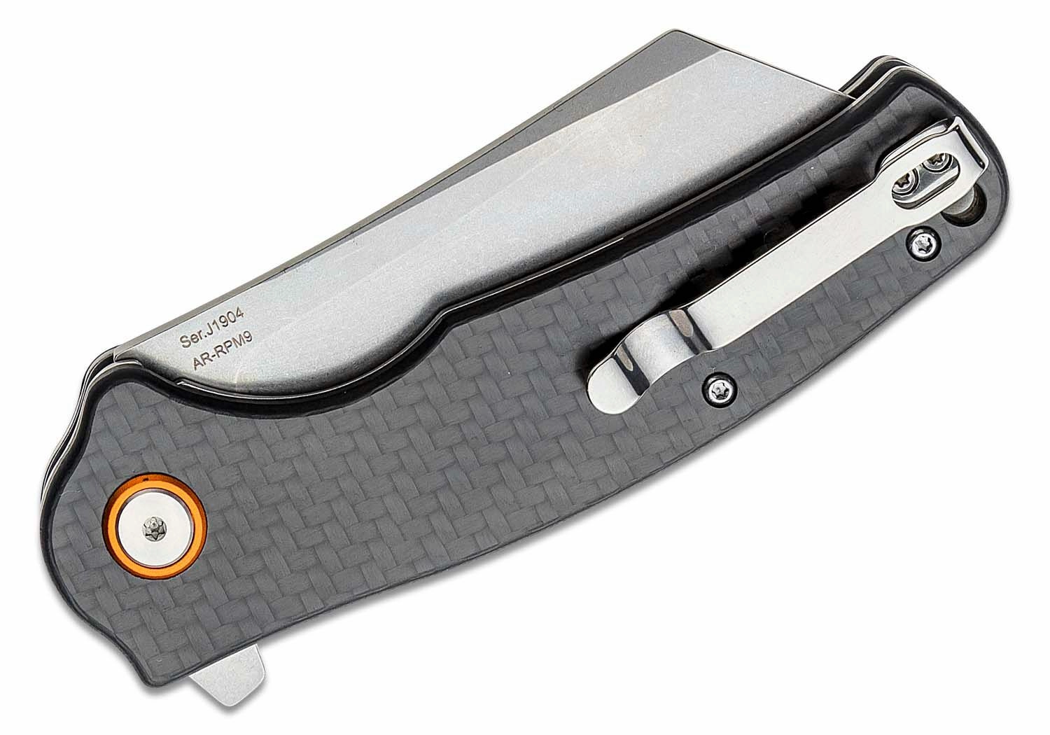 Robusten in zanesljiv žepni nož CJRB Crag z rezilom tipa cleaver iz praškastega jekla AR‑RPM9 in zaključkom stonewash zlahka opravi tudi z zahtevnimi nalogami. Zaradi kompaktnih mer je idealen za vsakodnevno (EDC) nošenje v naravi in doma. Flipper omogoča hitro odpiranje, varno delo pa zagotavlja liner lock, medtem ko ročaj iz ogljikovih vlaken v sivi barvi nudi čvrst in udoben oprijem.