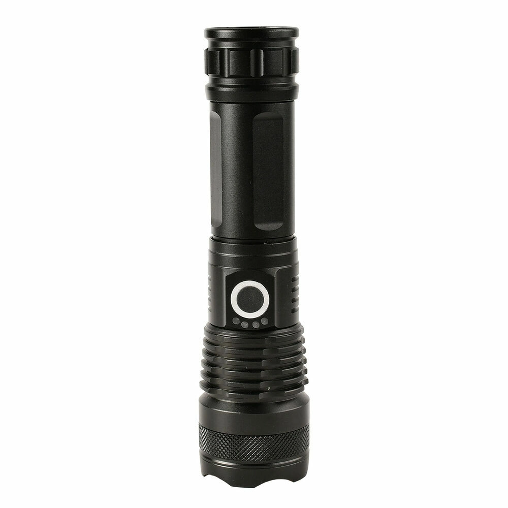 Vgrajen akumulator tipa 26650 s kapaciteto 3500 mAh se polni prek USB‑C. Polno polnjenje traja približno 2–3 ure in ga lahko opravite iz katerega koli USB‑priključka ali powerbanke s priloženim kablom. Preprosto upravljanje omogoča hitro vklapljanje/izklapljanje in spreminjanje svetlosti, medtem ko zoom z obračanjem glave tekoče prilagodi širino in doseg snopa.