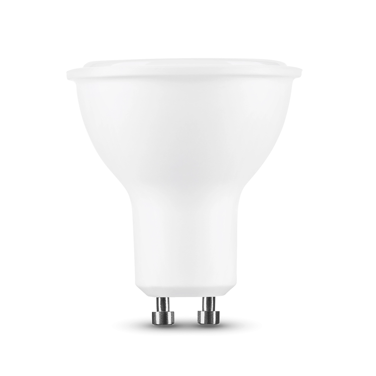 LED žarnica s tehnologijo SMD LED zagotavlja takojšnjo polno svetilnost brez segrevanja in utripanja. Primerna je za vgradne svetilke v suhomontažne strope, stenske in namizne svetilke s podnožjem GU10. Stabilna zasnova z aluminijastim notranjim delom in trpežnim plastičnim pokrovom prispeva k višji učinkovitosti in zanesljivosti.