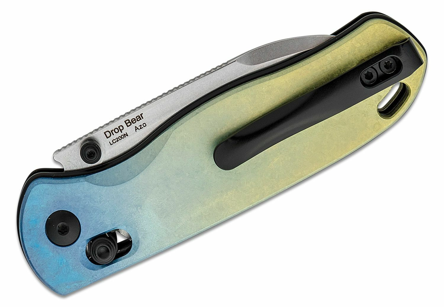 Kizer Drop Bear je stilski in vzdržljiv preklopni nož, zasnovan za zahtevno vsakodnevno uporabo. Rezilo iz jekla LC200N s stonewash obdelavo kljubuje koroziji in obrabi, gladek rob pa zagotavlja čist, natančen rez. Odpiranje poteka udobno s pomočjo čepka na rezilu.