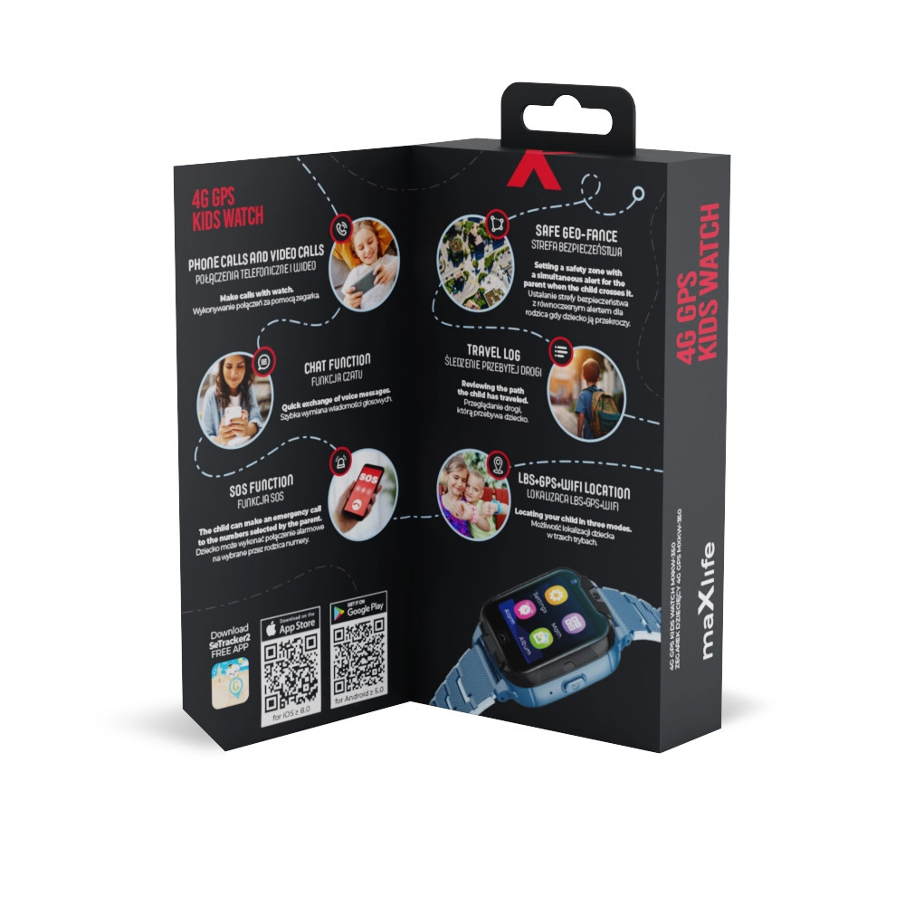 Otroška 4G ura Maxlife združuje varnost za starše in veselje za otroke. Zahvaljujoč natančnemu GPS/4G/Wi‑Fi določanju lokacije zlahka izveste, kje je otrok, in nastavite varne cone z takojšnjimi obvestili ob njihovem zapustitvi. Podpora za klice in video klice omogoča hiter stik kadarkoli in kjerkoli, ne manjka SOS funkcija za primere, ko je potrebna pomoč.