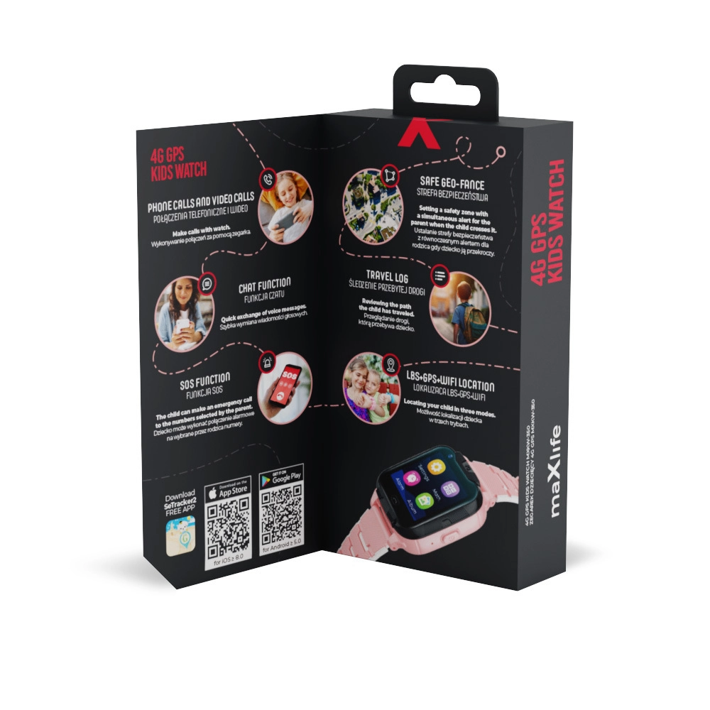 Otroška pametna ura Maxlife s podporo 4G/LTE omogoča klice in video klice, natančno GPS+Wi‑Fi določanje lokacije ter priročni SOS gumb za hitro pomoč. V aplikaciji preprosto nastavite varna območja, preverite traso gibanja in uporabite oddaljeno poslušanje ali remote camera za vpogled v otrokovo okolico.