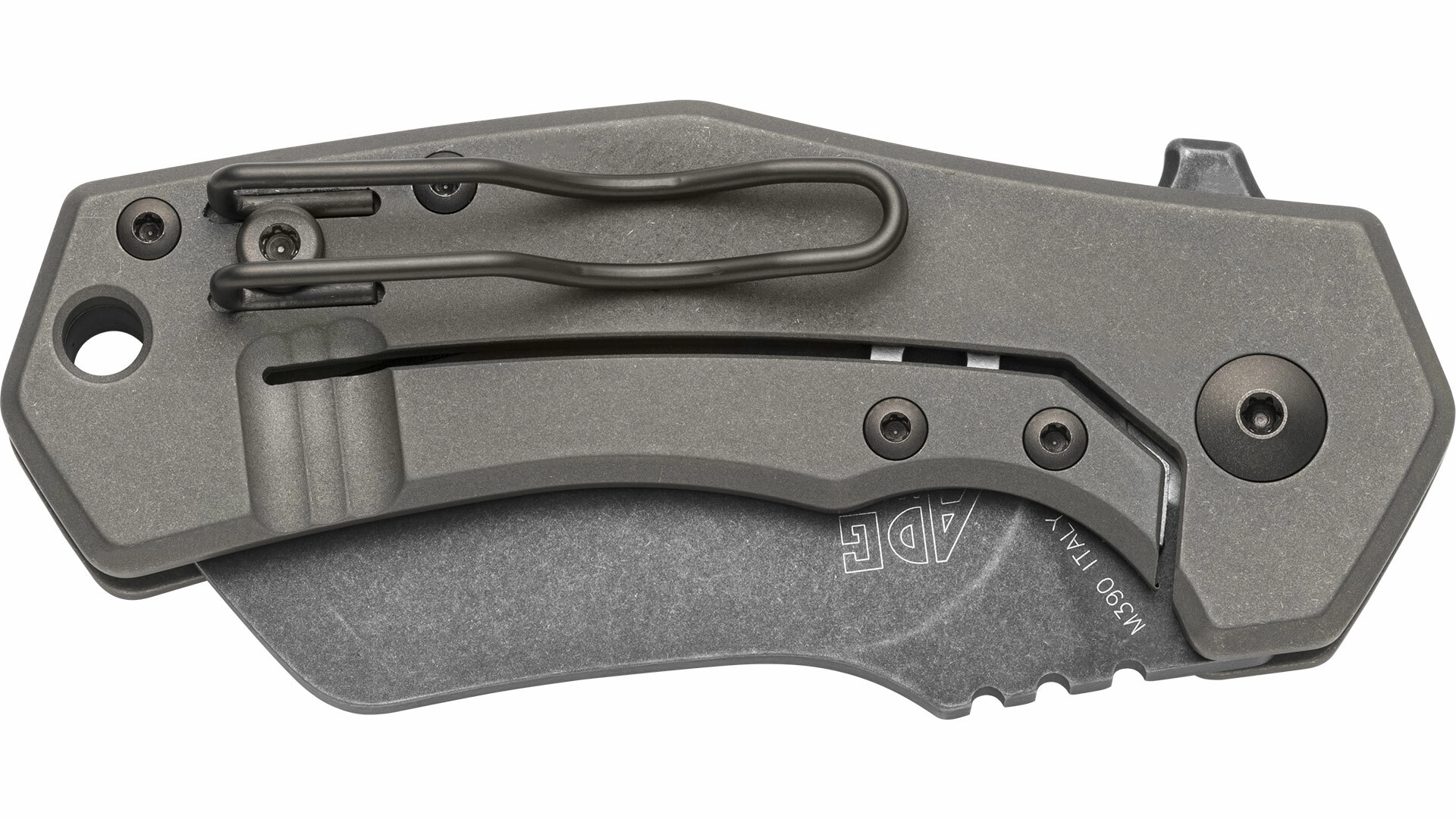 Ročaj iz titana s črno PVD površino je trden, lahek in ergonomičen. Za odpiranje skrbi gladek Flipper, za varnost pa Linerlock. Praktično opremo dopolnjujeta žepna sponka in odprtina za vrvico za enostavno nošenje in hitro dostopnost.