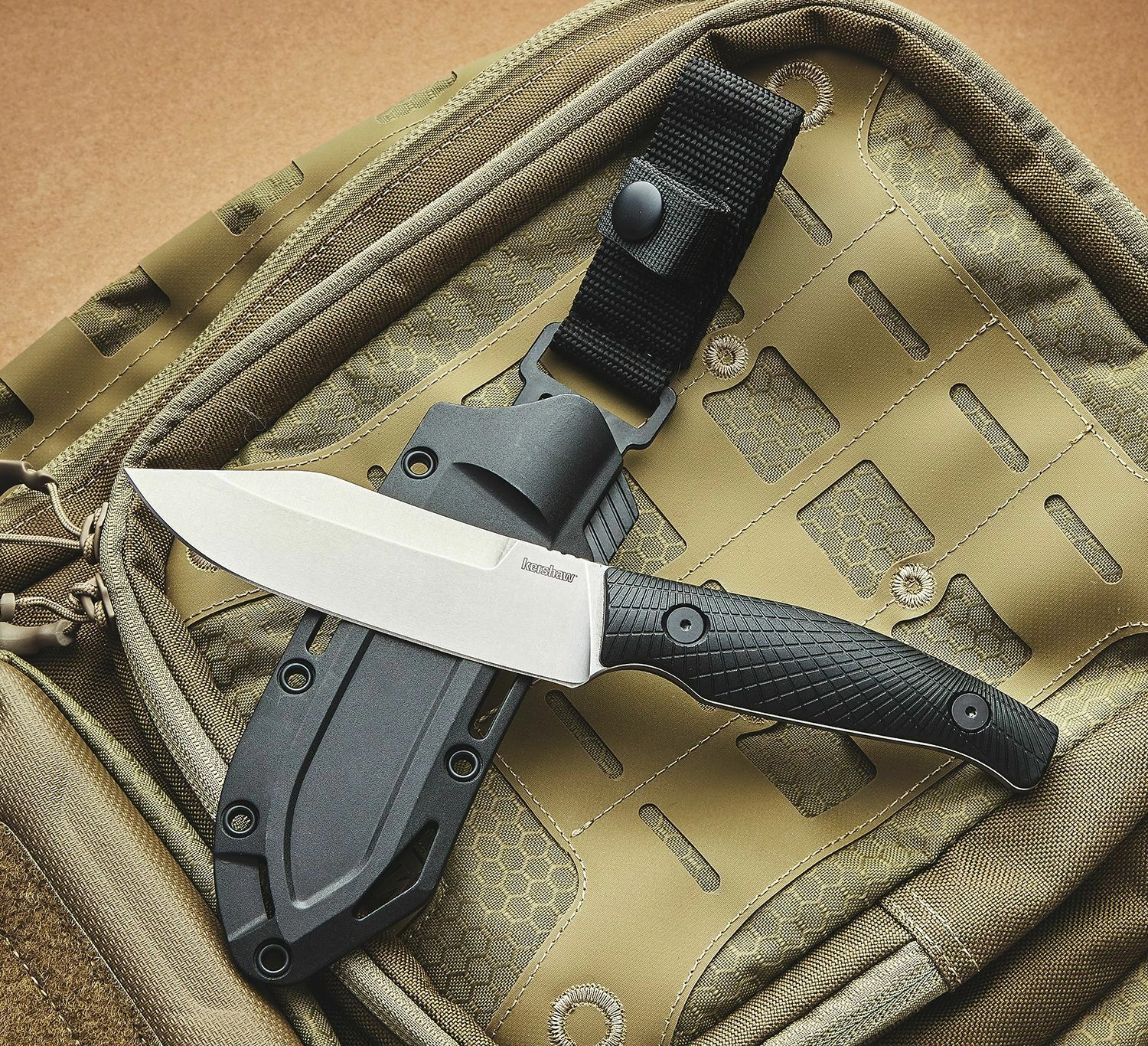 Kershaw Camp 5 je zanesljiv fiksni nož, zasnovan za zahtevno outdoor uporabo. Rezilo tipa Bowie iz orodnega jekla D2 z odporno stonewash obdelavo kljubuje koroziji in obrabi ter odlično opravi z rezanjem, sekanjem in natančnim delom. Polnovredna full‑tang konstrukcija povečuje splošno togost in življenjsko dobo noža.