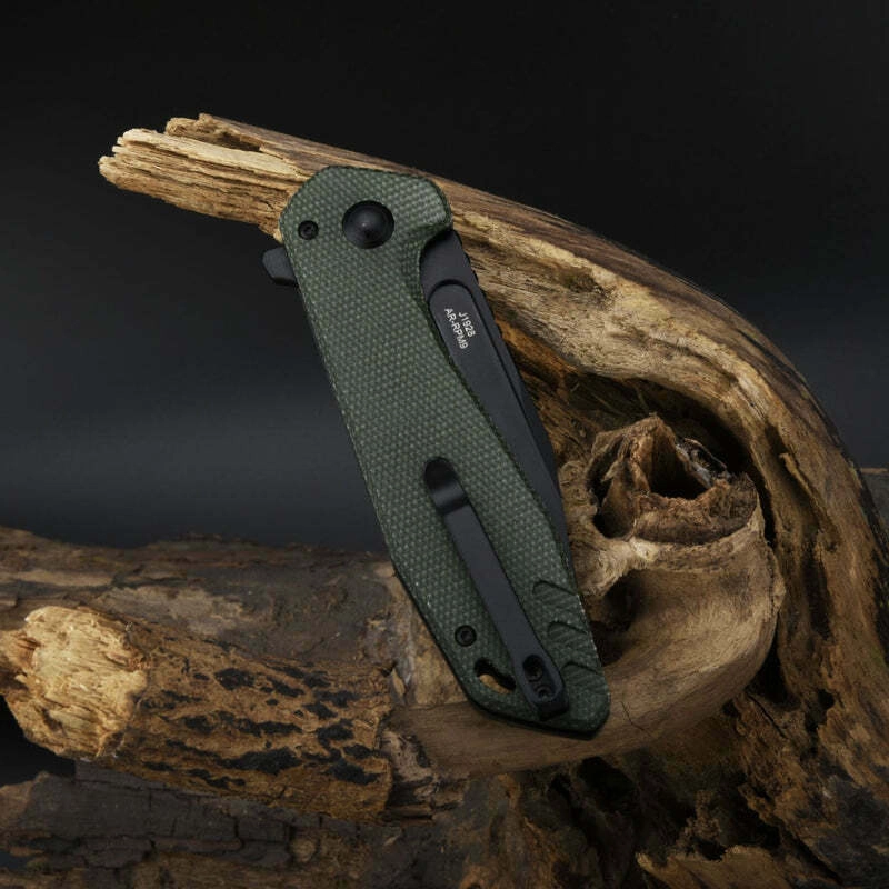 Ročaj iz odporne Micarte v zelenem odtenku nudi prijeten, zanesljiv oprijem tudi v mokrem. Nizkoprofilna žepna sponka olajša vsakodnevno nošenje in drži nož varno v žepu. Riff Green je zanesljiv spremljevalec za delo, pohodništvo in EDC – povsod, kjer cenite kombinacijo zmogljivosti in udobja.