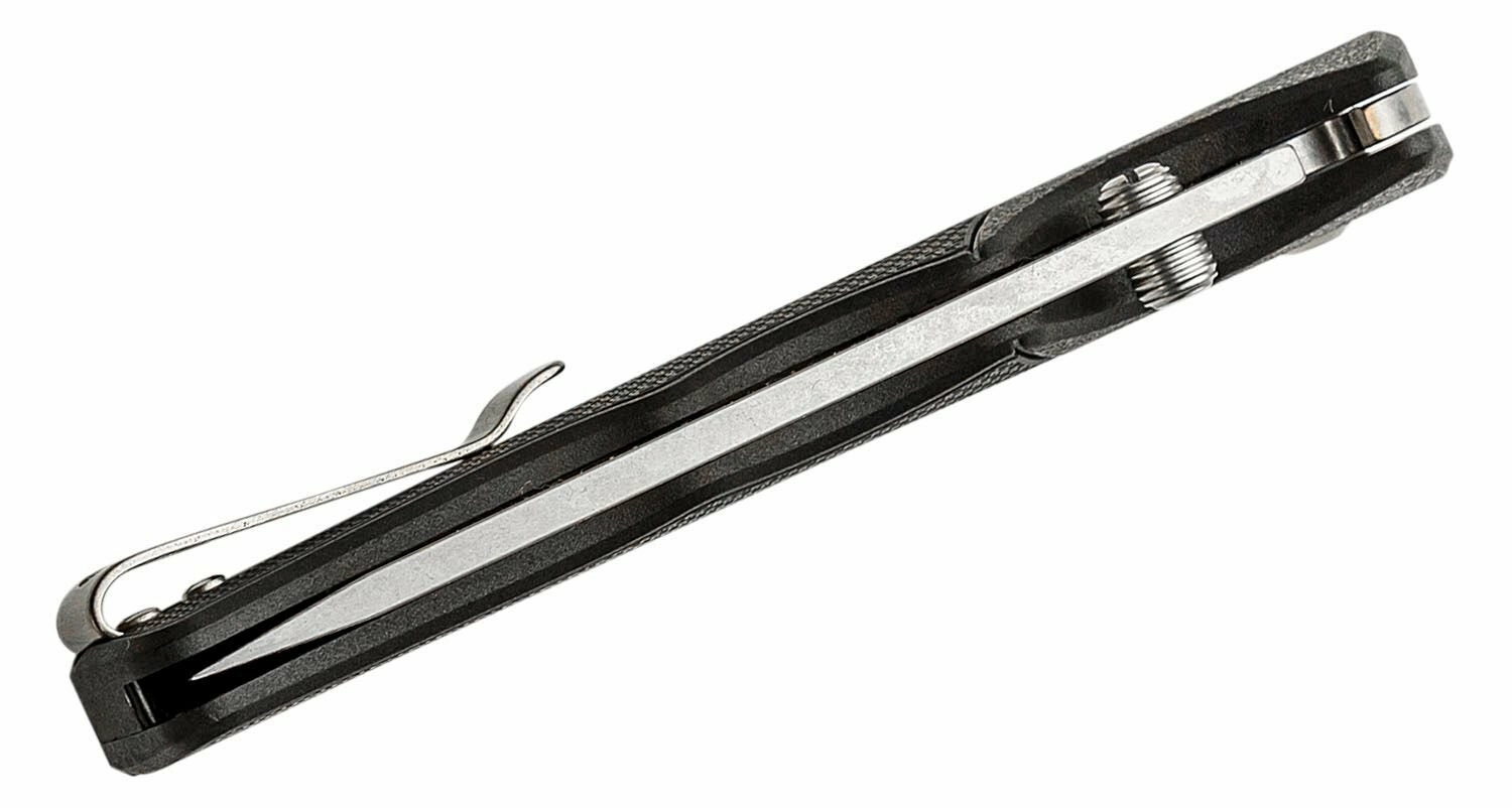 Lahek in vzdržljiv zložljiv nož za vsakodnevno nošenje (EDC) z rezilom tipa Tanto iz nerjavnega jekla 4116 in površinsko obdelavo Stonewash. Odpiranje s palčnim čepkom, varno zaklepanje zagotavlja Tri-Ad Lock. Ergonomičen ročaj iz GFN v črni barvi z odprtino za vrvico in sponko za žep za udobno nošenje.