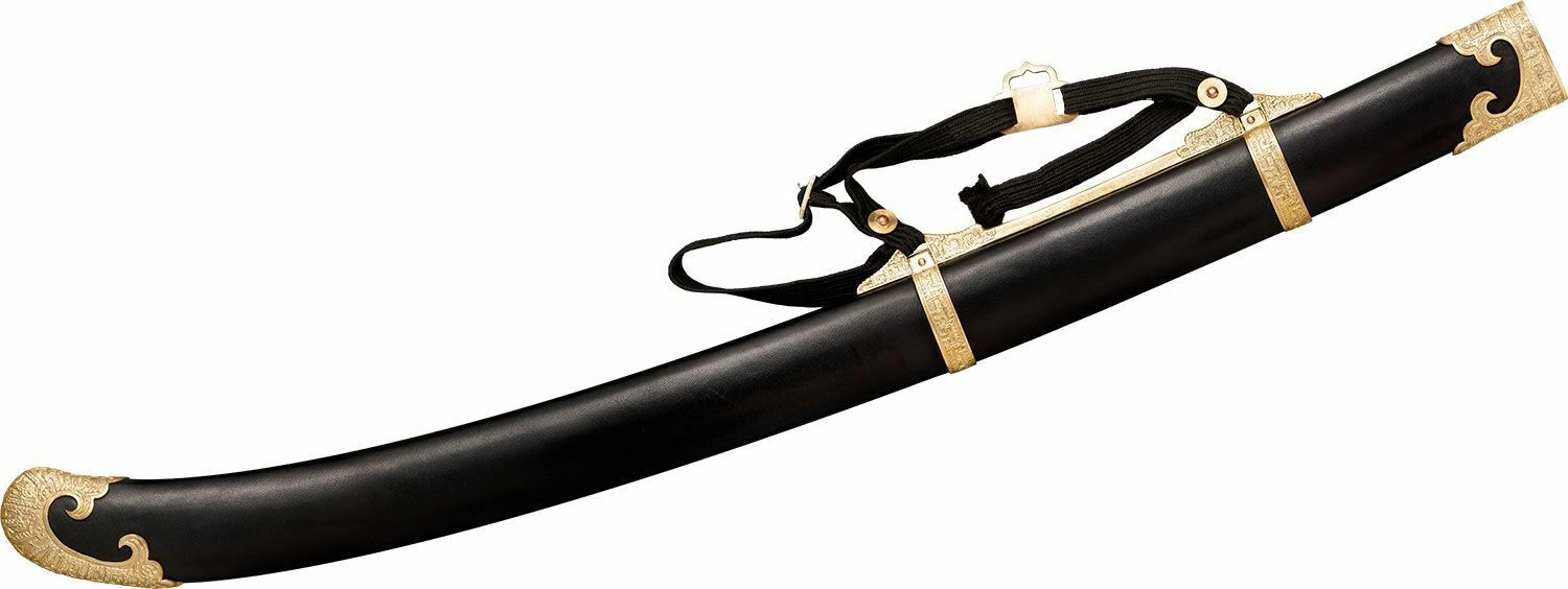 Elegantna replika zgodovinske kitajske konjeniške sablje za zbiratelje in ljubitelje orožja. Ponuja ročno kovanje iz jekla 1060, dekorativno medeninasto okovje in ročaj iz trdega lesa, ovit s svilnato vrvico. Priložena je usnjena nožnica z medeninastimi elementi za varno shranjevanje in impresiven videz.