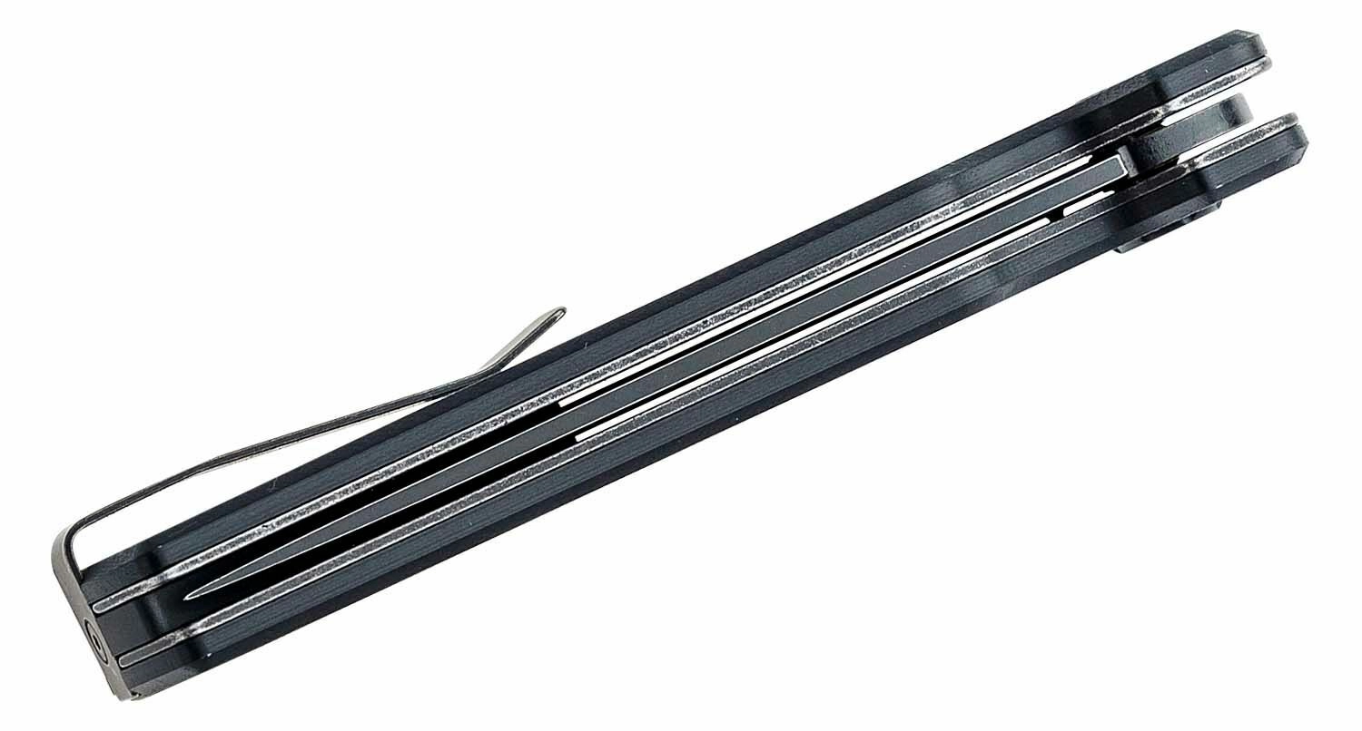 Ergonomski ročaj iz črnega G10 nudi visok oprijem tudi v mokrem ali hladnem vremenu. Praktična žepna sponka omogoča globoko nošenje, odprtina za vrvico pa razširja možnosti pritrditve in izvleka. Nož je idealen za taktične scenarije, outdoor in EDC.