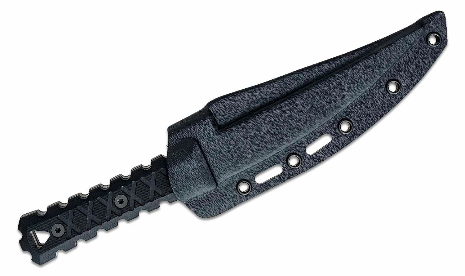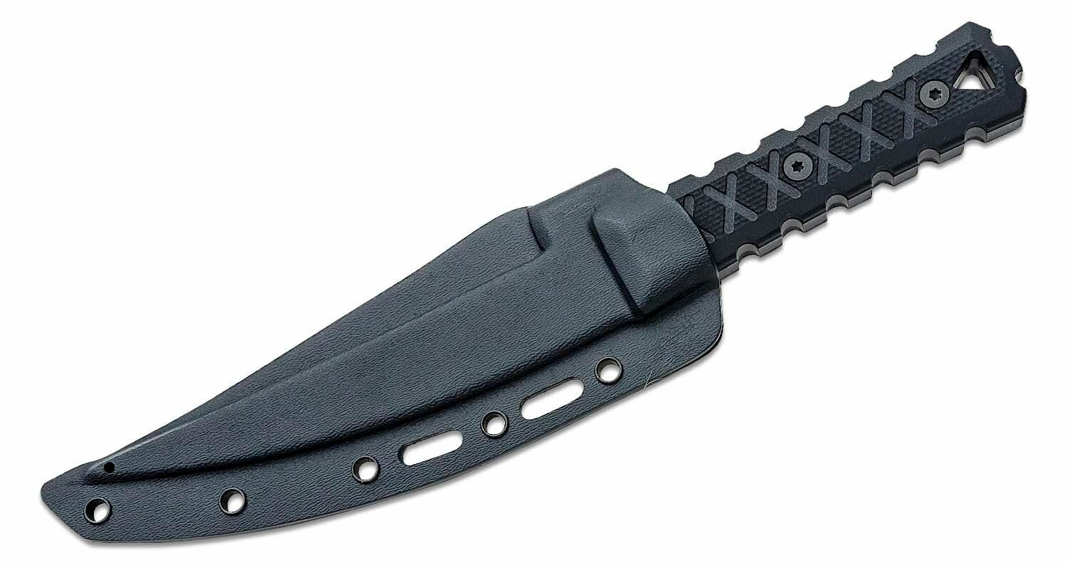 Ergonomski ročaj iz materiala G10 v črni barvi zagotavlja zanesljiv oprijem tudi v mokrih razmerah ali z rokavicami. Priložen tok Boltaron omogoča več načinov pritrditve in varno nošenje na pasu ali opremi.