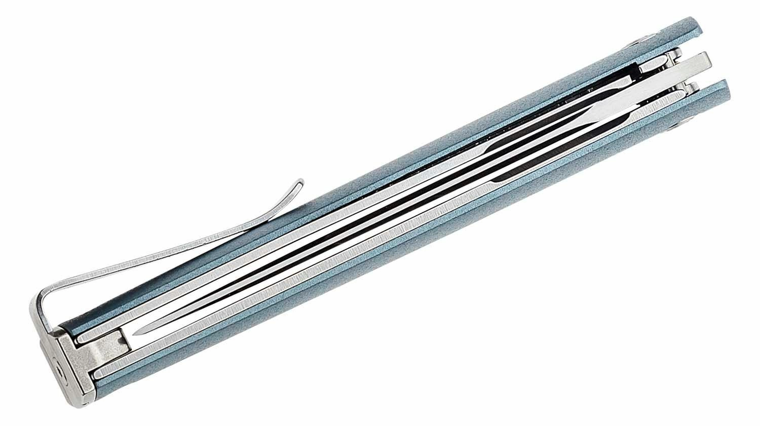 CRKT CEO Compact Blue izstopa z izjemno vitkim profilom, zaradi katerega v žepu skoraj izgine, v prsnem žepu pa spominja na pero. Kljub temu ponuja zanesljiv oprijem, gladko delovanje rezila in kakovostno izdelavo za vsak dan. Nerjavno jeklo 1.4116 s satinskim finišem zagotavlja zanesljivo delovanje pri običajnih rezih in enostavno vzdrževanje.