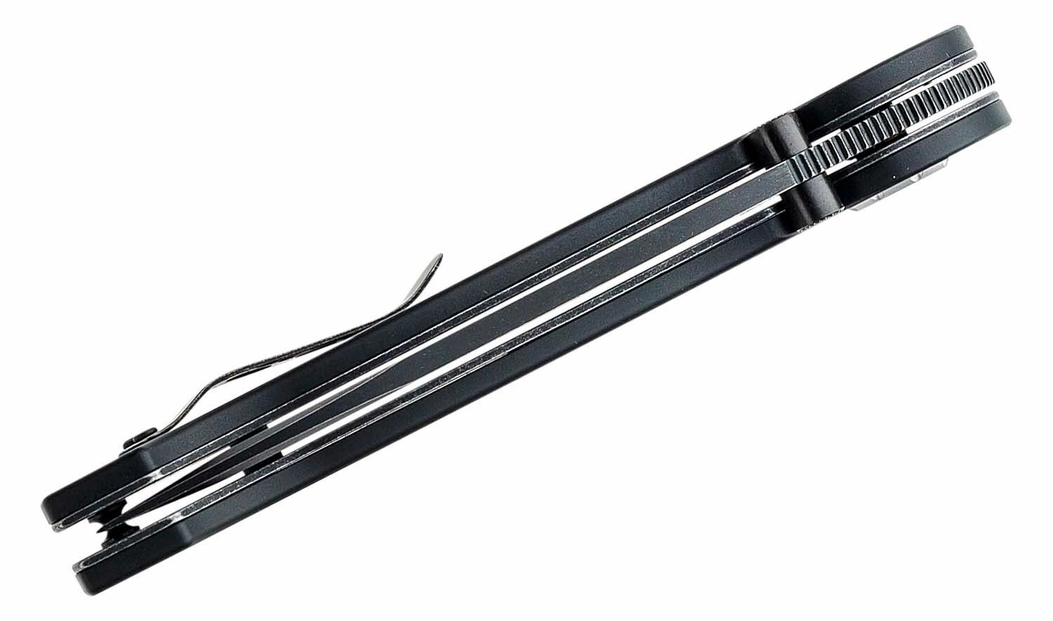 Črno eloksiran aluminij z olajševalnimi odprtinami zmanjšuje težo brez kompromisov pri trdnosti. Žepna sponka zagotavlja udobno EDC nošenje.