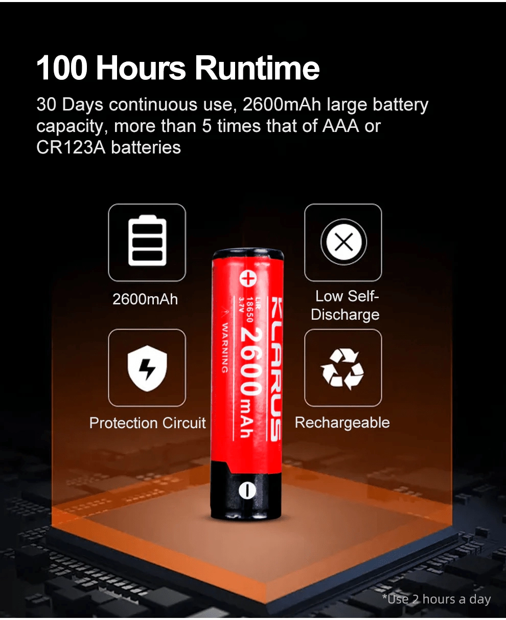 • Avtonomija do 100 ur z baterijo 18650 2600 mAh (vključena)