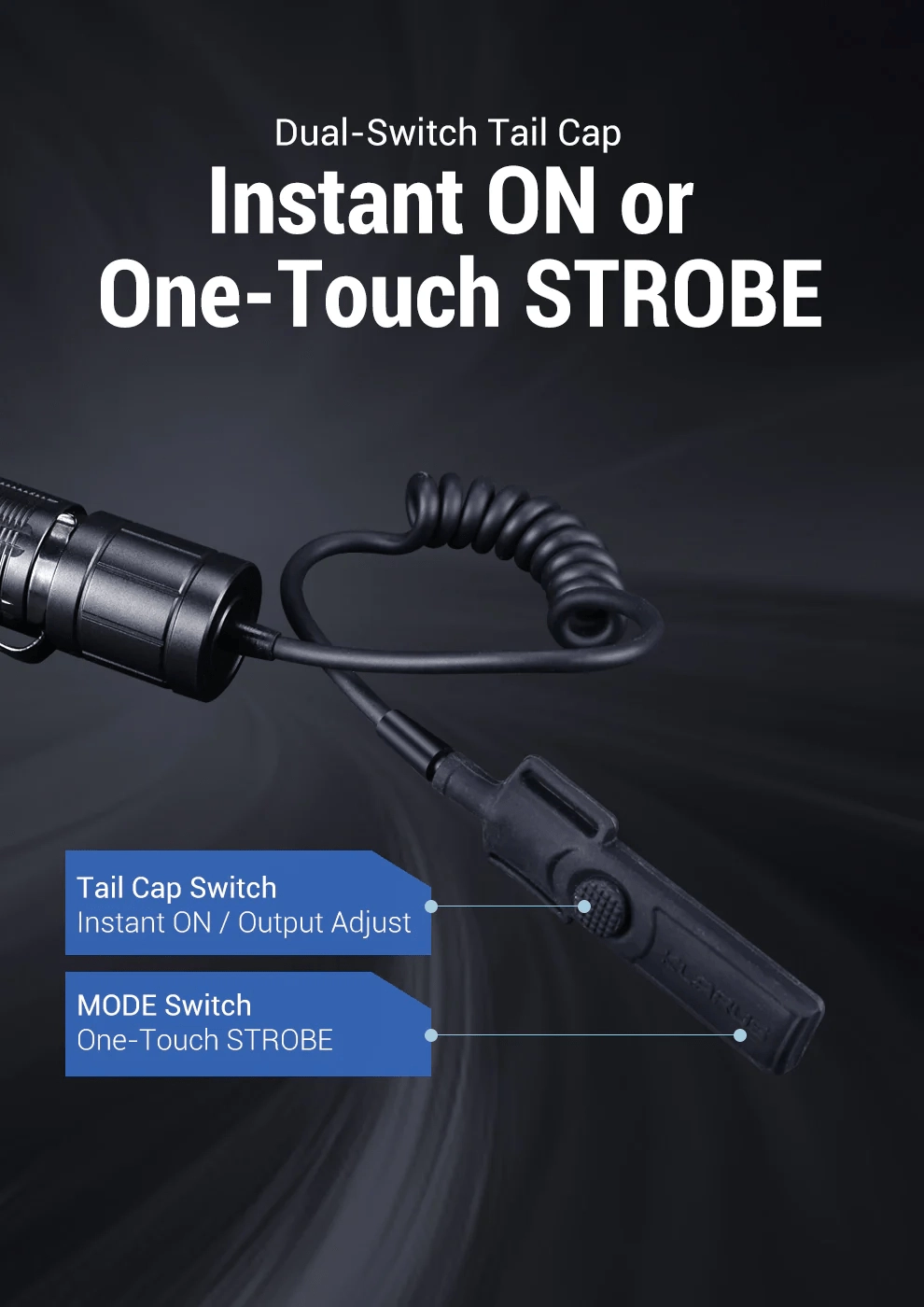 Iščete zanesljivost in hitrost pri upravljanju taktične svetilke? Klarus TRC1 prinaša intuitivno razporeditev dveh gumbov: okrogli za polno moč 100 % (trenutni ali stalni vklop) in podolgovati za takojšnjo aktivacijo stroboskopa že z držanjem. Tako dobite maksimalen nadzor v kriznih in outdoor situacijah.