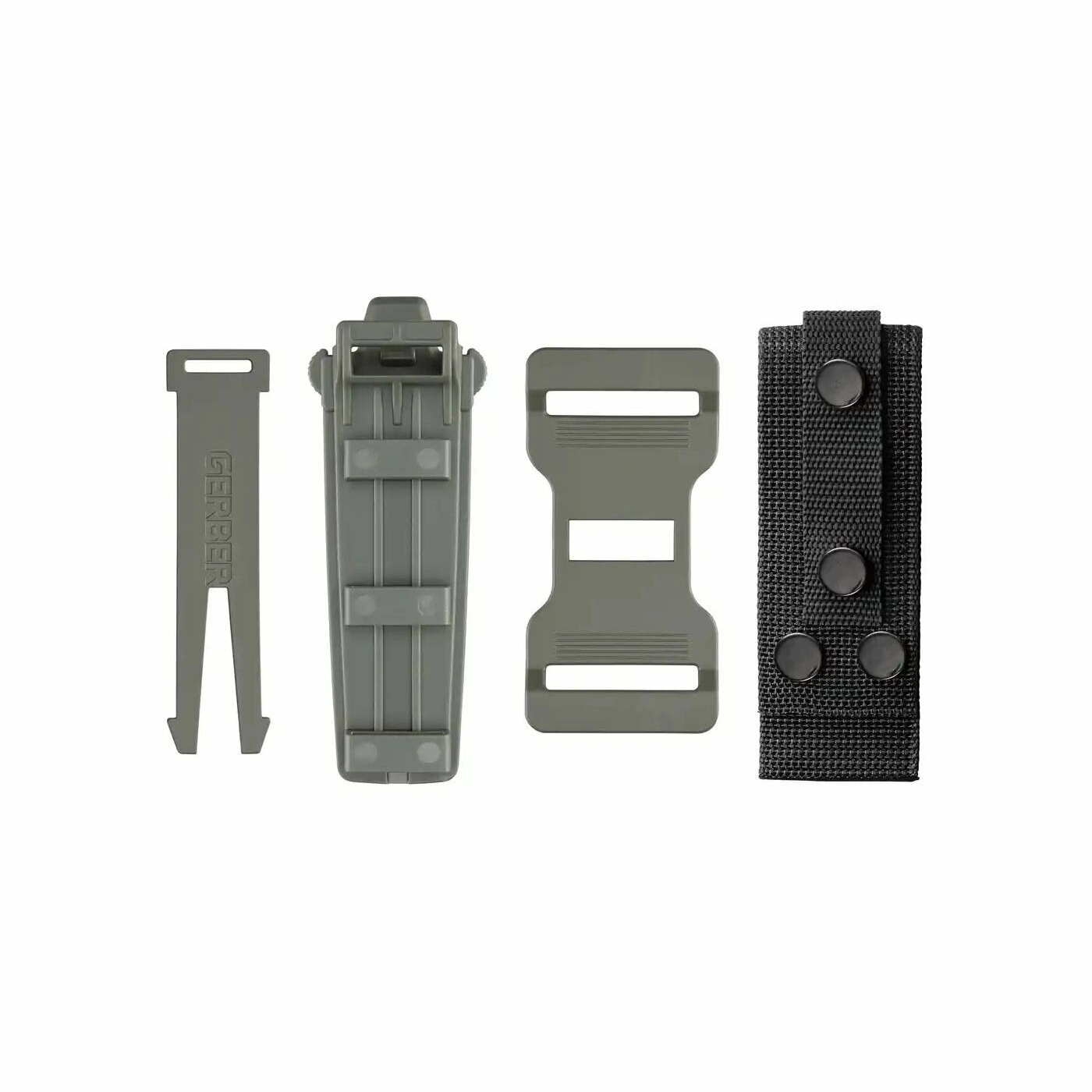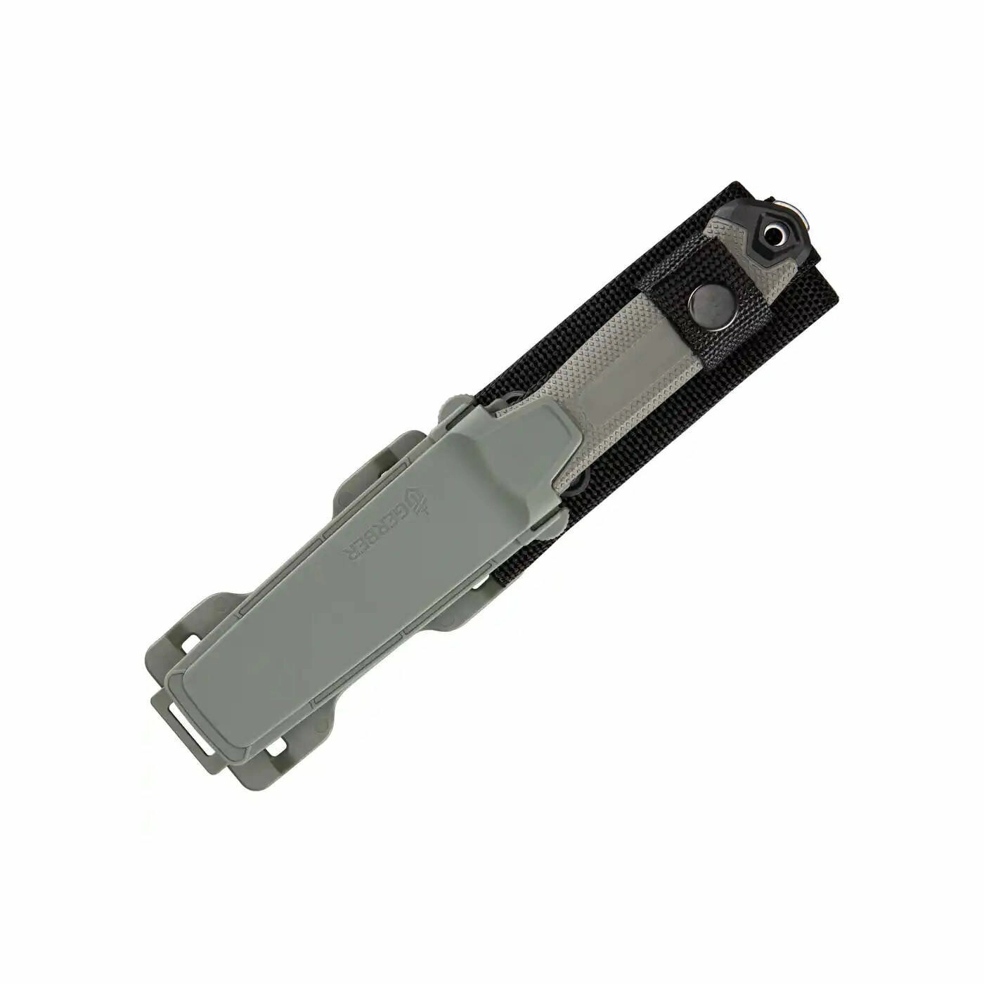 Teksturiran ročaj iz GFN (z vlakni stekla ojačan najlon) odlično leži v roki tudi moker in nudi zanesljiv oprijem. Vgrajeno ušesce za paracord razširja možnosti pritrditve in varovanja. Priložen je vzdržljiv plastičen tok z modularnim sistemom pritrditve in popolno združljivostjo z MOLLE – za vodoravno ali navpično nošenje na pasu, nahrbtniku ali opremi.