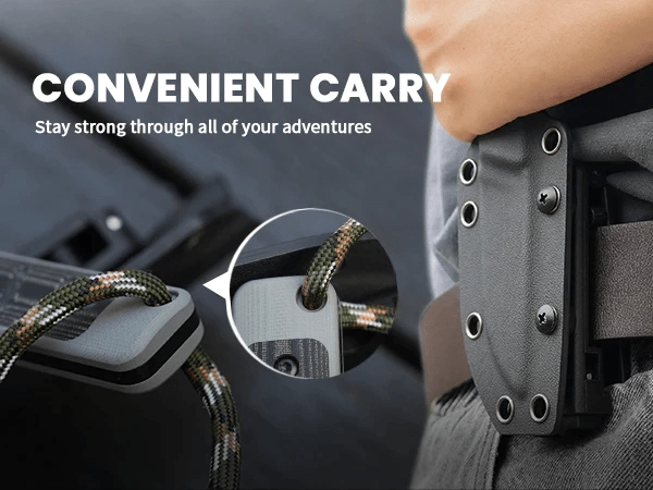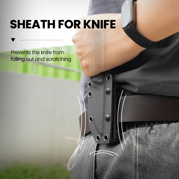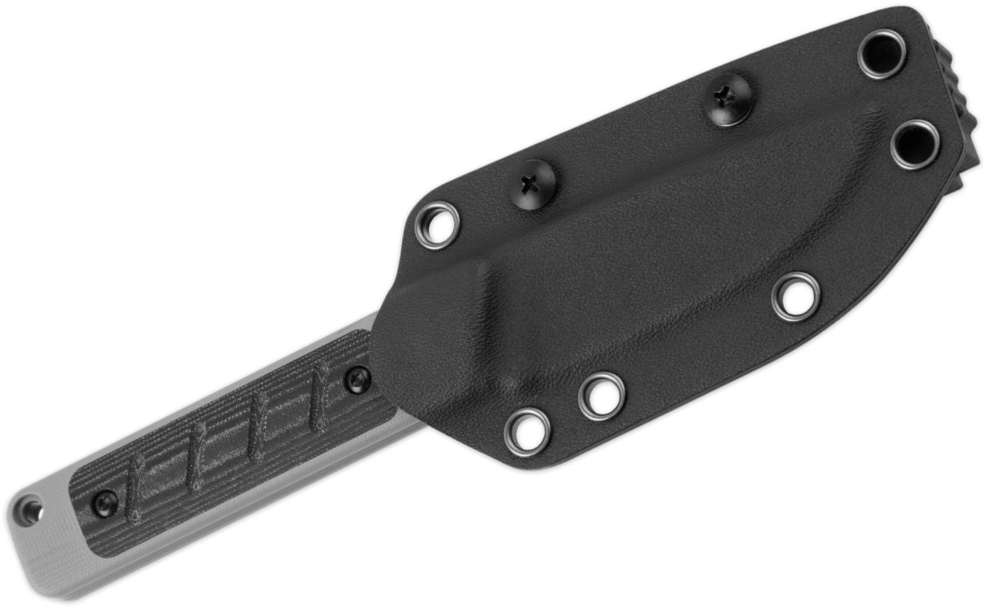 Ročaj iz G10 z Micarta zaščito nudi zanesljiv, nekonvencionalen oprijem tudi v mokrem. Polna konstrukcija in odprtina za vrvico povečujeta varnost in nadzor nad nožem. Del paketa je oblikovana Kydex nožnica z možnostjo pritrditve na pas, ki ščiti rezilo in olajša vsakodnevno nošenje.