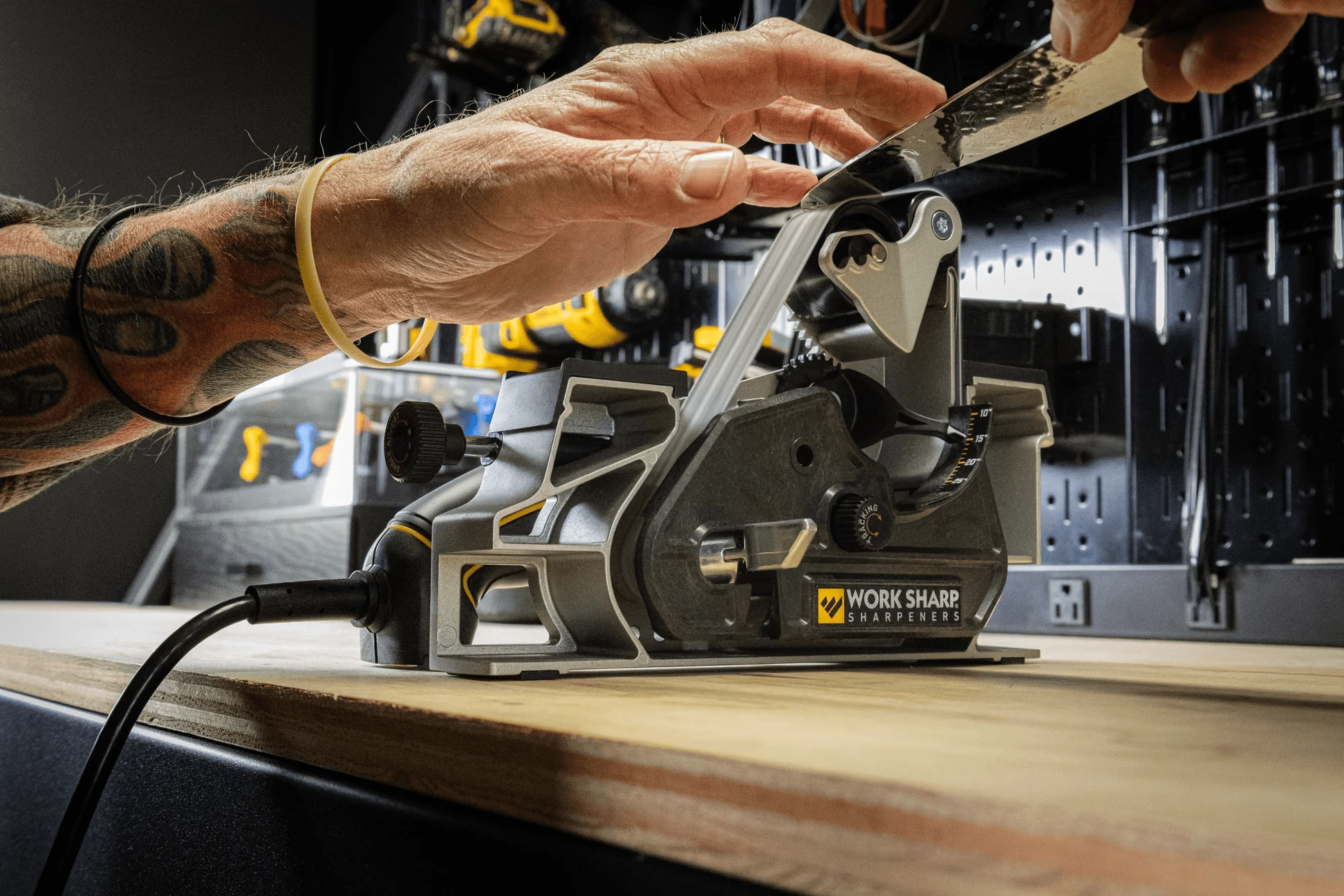 Nastavek Work Sharp Blade Grinder Mk2 pretvori vaš brusilnik Ken Onion Edition Knife & Tool Sharpener Mk.2 v zmogljiv namizni sistem za horizontalno brušenje. Zahvaljujoč popolnoma nastavljivim kotom ostrenja od 10° do 35° in večjim trakovom 1" x 18" pridobite maksimalno natančnost, nadzor in ponovljivost pri brušenju kuhinjskih, outdoor in delovnih nožev.