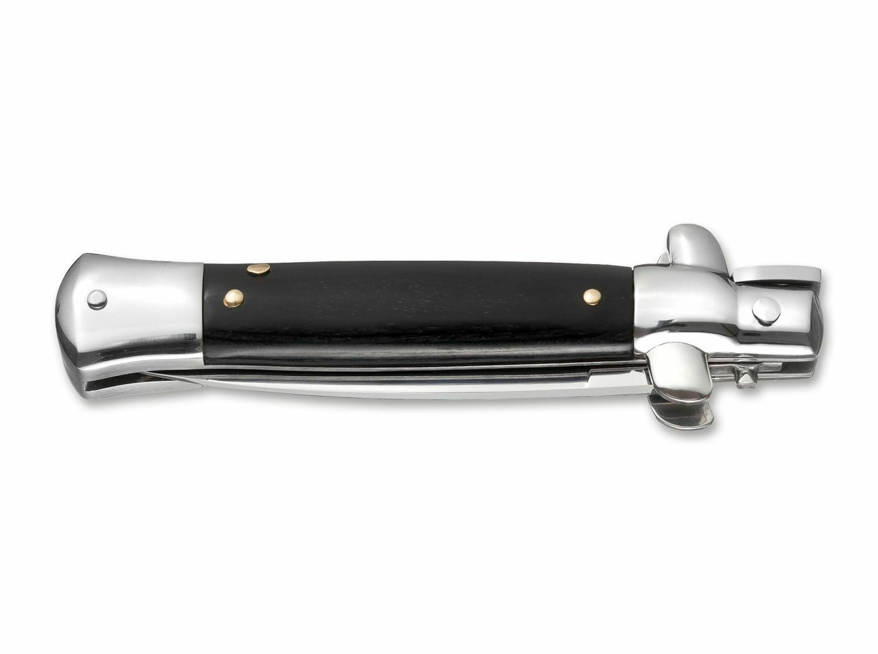 Ikonični italijanski stilet z avtomatskim odpiranjem za zbiratelje in navdušence. Hitro odpiranje na gumb, rezilo iz jekla 440A s satenskim zaključkom in eleganten ročaj iz temnega lesa Pakka tvorijo dovršeno in funkcionalno celoto.