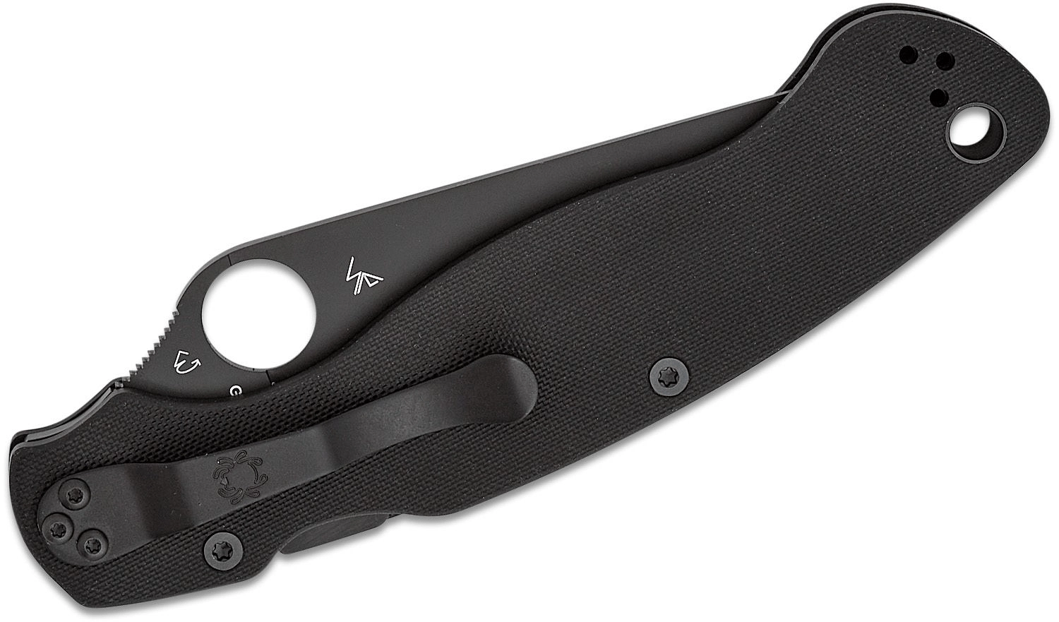 Ročaj iz G10 v popolnoma črni izvedbi je teksturiran za zanesljiv oprijem v suhem in mokrem. Nož se odpira s prepoznavno luknjo v rezilu in je zavarovan z robustnim Compression Lock za maksimalno trdnost in varnost. Žepno sponko je mogoče prestaviti v štiri položaje za popolno prilagoditev nošenja.