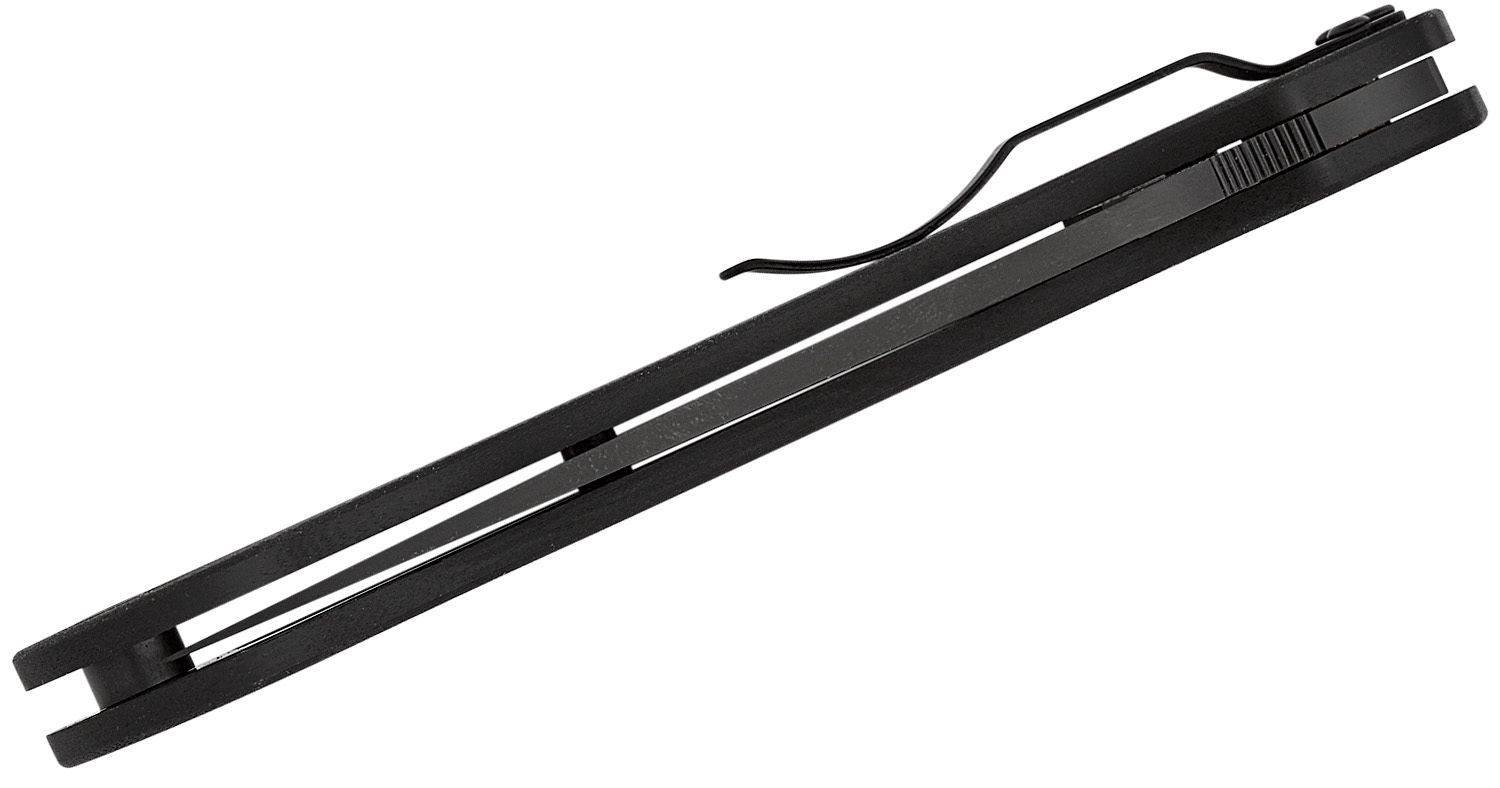 Teksturiran G10 zagotavlja zanesljiv oprijem tudi z rokavicami. Žepno sponko je mogoče pritrditi v štiri položaje za maksimalno prilagodljivost nošenja.