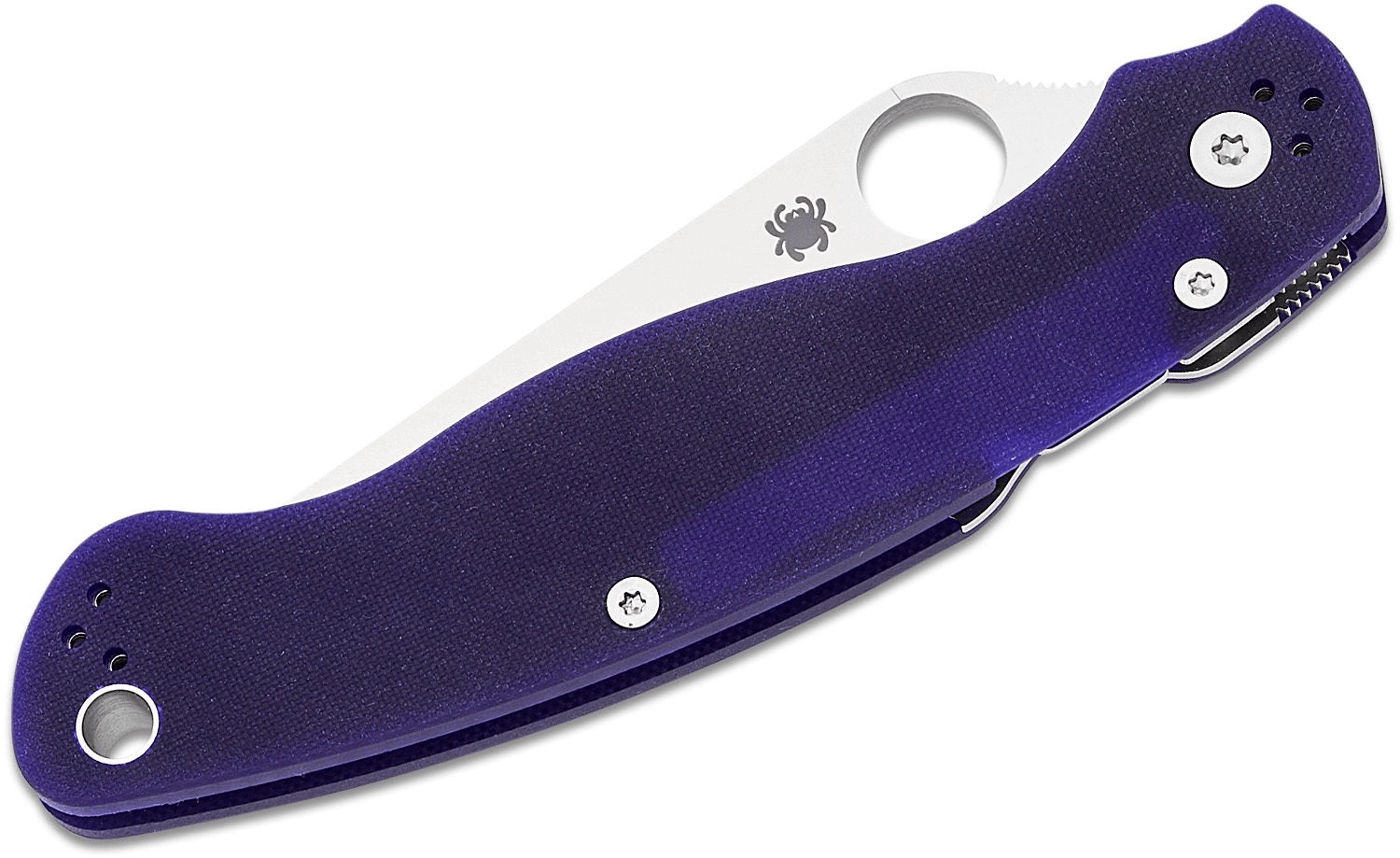 SPYDERCO Military 2 Dark Blue je sodobna evolucija legendarnega modela Military. Zahvaljujoč jeklu CPM-S110V rezilo zelo dolgo ohranja ostrino tudi pri intenzivni uporabi, profil Drop Point z gladkim rezilom pa zagotavlja natančen in nadzorovan rez. Velika palčna odprtina omogoča gladko odpiranje z eno roko.
