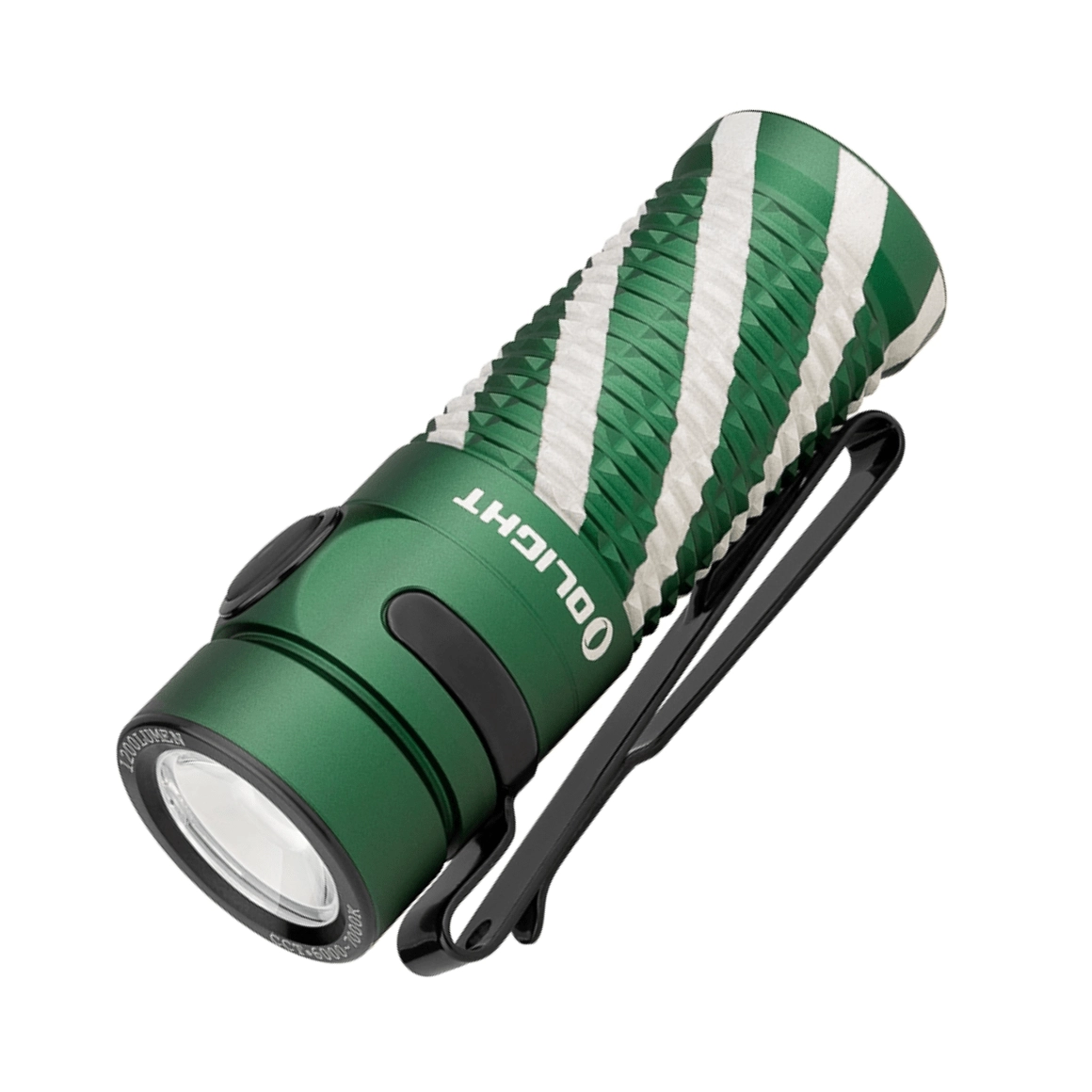 Ultrakompaktna svetilka OLIGHT Baton 3 Christmas Green v omejeni izdaji ponuja do 1.200 lm, doseg 166 m in magnetno polnjenje. Z novo protizdrsno teksturo, obojestransko sponko in magnetnim dnom je idealna za EDC, kampiranje in delo brez uporabe rok.