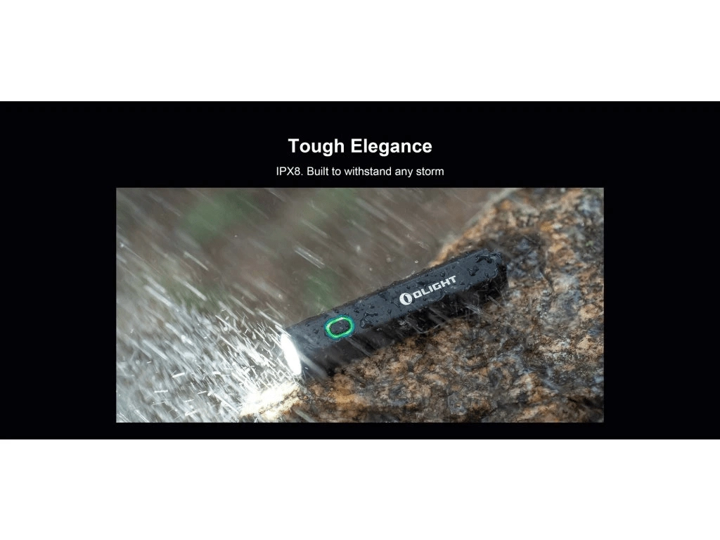 Petkotno ohišje iz aluminijeve zlitine odlično sede v roko in prenese zahtevne razmere zahvaljujoč visoki vodoodpornosti IPX8.