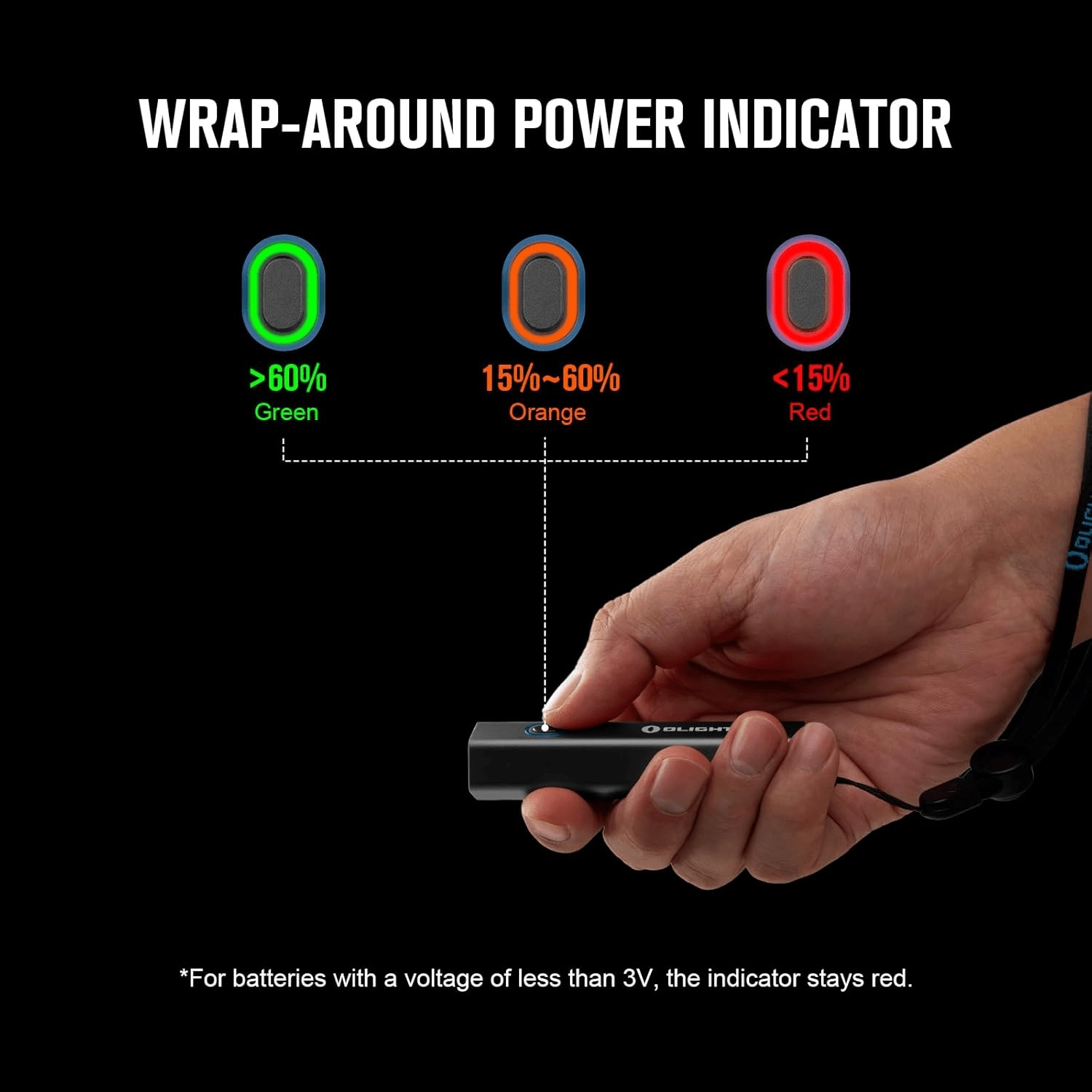 Za vsakodnevno nošenje ponuja 5 načinov svetenja od 1 lm (Moon) do 700 lm (Turbo) ter stroboskop 13 Hz za nujne situacije. Vgrajeni indikator napajanja okoli stikala (zelena/oranžna/rdeča) vas sproti obvešča o preostali energiji. Napajanje je prilagodljivo: deluje z običajnimi AA baterijami in s priloženo polnilno 14500 Li‑ion 3,6 V 920 mAh.