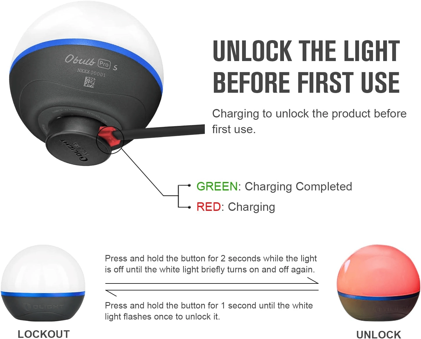 Kompaktna in vzdržljiva lučka OLIGHT Obulb Pro S ponuja svetilnost do 240 lm, upravljanje prek Bluetootha v aplikaciji Olight Hub, dolgo avtonomijo do 6,5 dneva ter magnetno pritrjevanje in polnjenje. Idealna za kampiranje, nujne primere, kot nočna lučka ali dekorativna osvetlitev z učinkovitimi RGB načini.