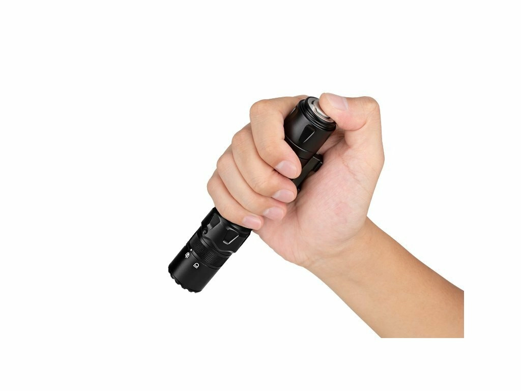 Robustno ohišje iz aluminijeve zlitine zagotavlja vzdržljivost in zanesljivost, montažni sistem M-LOK pa omogoča hitro in trdno namestitev na združljive platforme. Napajanje zagotavlja polnilni akumulator 21700 (5000 mAh) z magnetnim USB polnjenjem MCC3. Upravljanje je intuitivno prek končnega stikala ali magnetnega daljinskega stikala z dvema gumboma, ki je priloženo v kompletu.