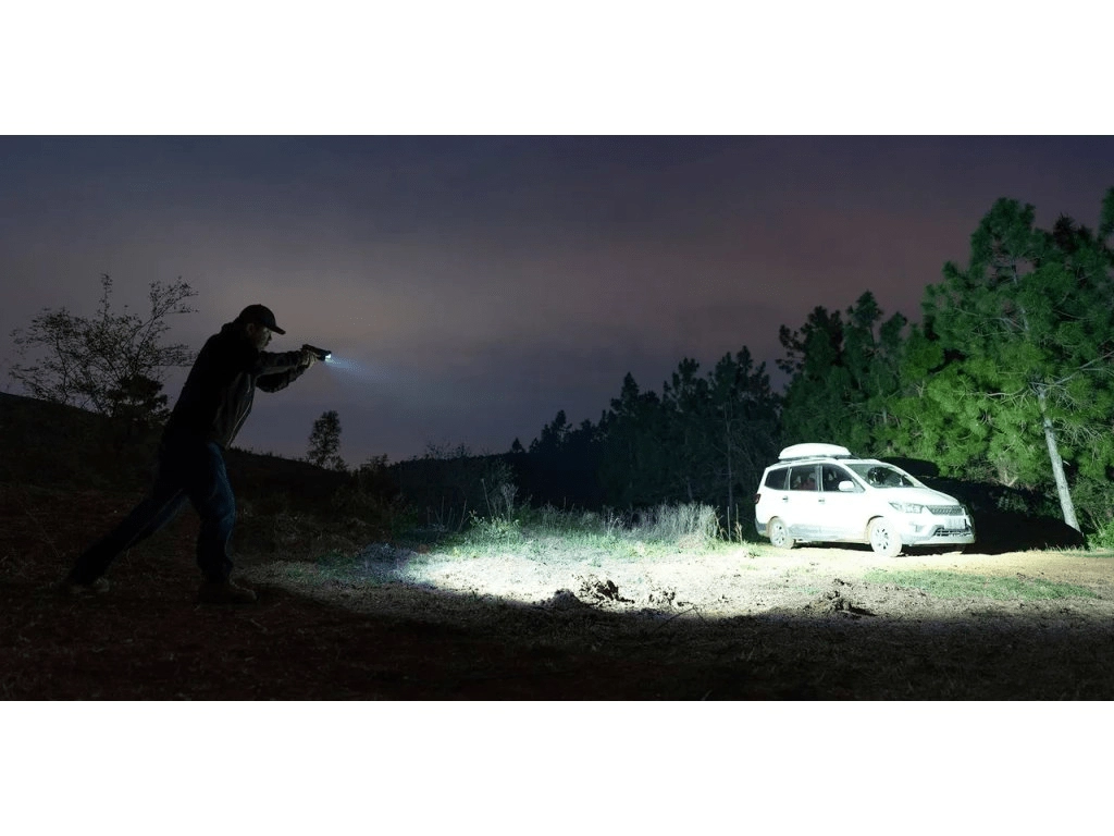 Visokozmogljiva hladno bela LED z optimizirano optiko zagotavlja oster žarek z minimalnim razprševanjem za hitro identifikacijo cilja in delo pri nizki svetlobi.