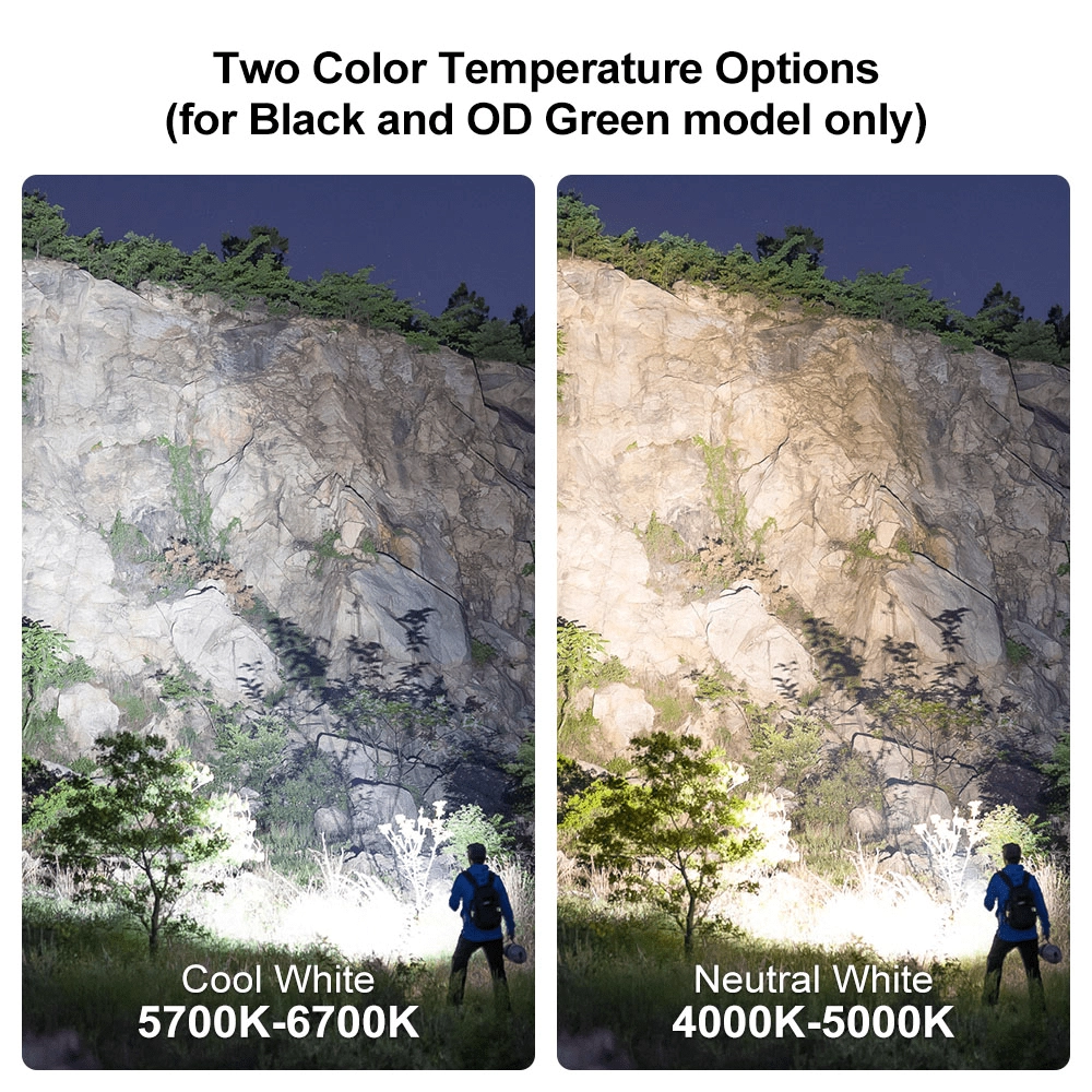 - Turbo: 1200 → 600 → 120 lm (3 + 41 + 25 min)