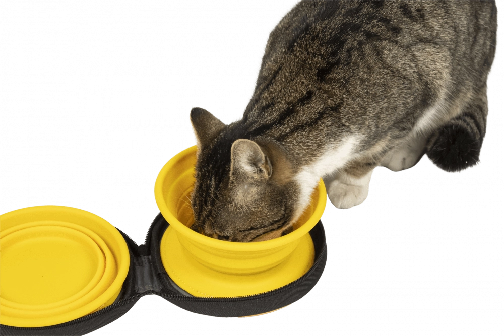 Uživajte v udobnem potovanju s svojim psom ali mačko zahvaljujoč praktični dvojni posodi KIWI WALKER. Zložljive silikonske posode so lahke, kompaktne in enostavne za vzdrževanje, zato jih brez težav vzamete na sprehod, v avto ali na dopust.