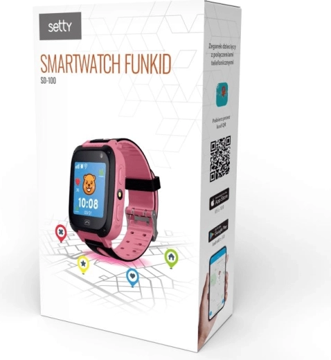 Ura Setty FunKids SD-100 pomaga otrokom odkrivati svet, staršem pa prinaša mir. Zahvaljujoč lokalizaciji prek LBS lahko kadarkoli preverite približno lokacijo otroka, funkciji nadzora glasu in SOS klic pa povečujeta varnost v vsakodnevnih situacijah. Intuitiven zaslon na dotik in udoben pašček dolžine 230 mm zagotavljata prijetno nošenje in enostavno upravljanje.