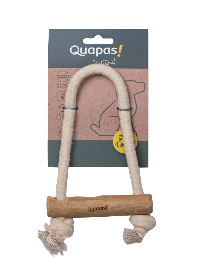 Odkrijte trpežno in okolju prijazno pasjo igračo, ki združuje naravni les kavovine s trdnim bombažnim kablom. Quapas! Pull je idealna za skupno vlečenje, prinašanje in samostojno žvečenje ter pomaga ohranjati ustno higieno psa na povsem naraven način.