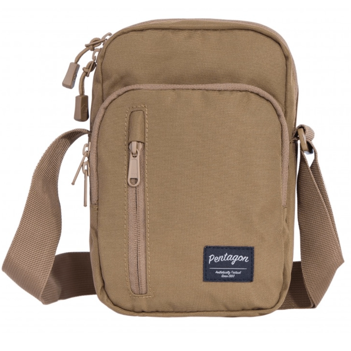 Praktična in vzdržljiva rama torba Pentagon Kleos je zasnovana za pregledno shranjevanje nujnih stvari na poti in v mestu. Glavni predal z obrnjenim zadrgom ščiti vsebino pred prahom in vlago, mehka notranja podloga omogoča uporabo modularnih vložkov in organizatorjev na ježek. Sprednji administrativni žep nudi hiter dostop do malenkosti, kot so ključi, denarnica ali telefon.