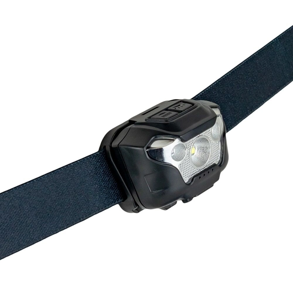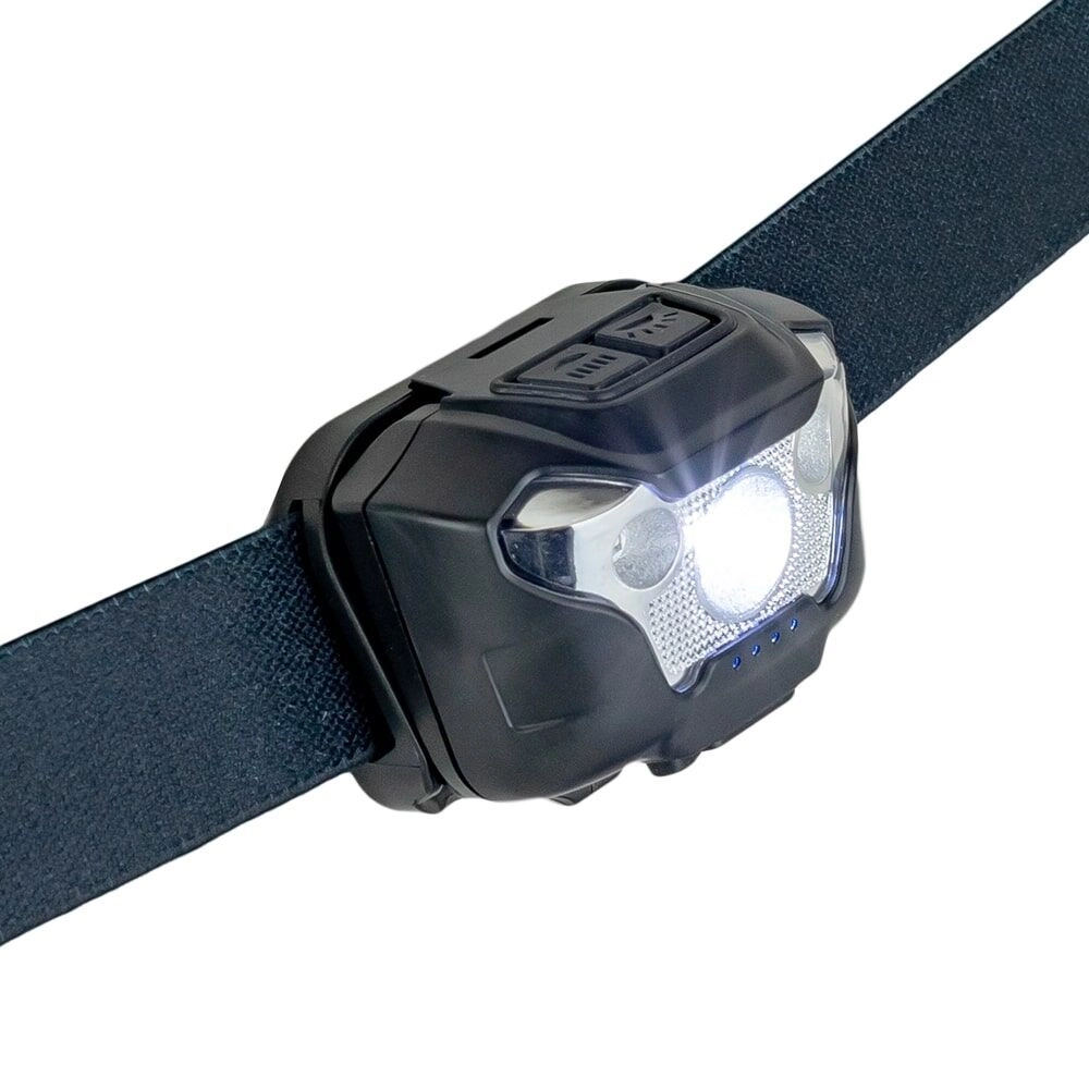 Glavna LED CREE XP‑G3 zagotavlja jasen snop s tremi stopnjami svetilnosti za delo od blizu in daljši doseg.