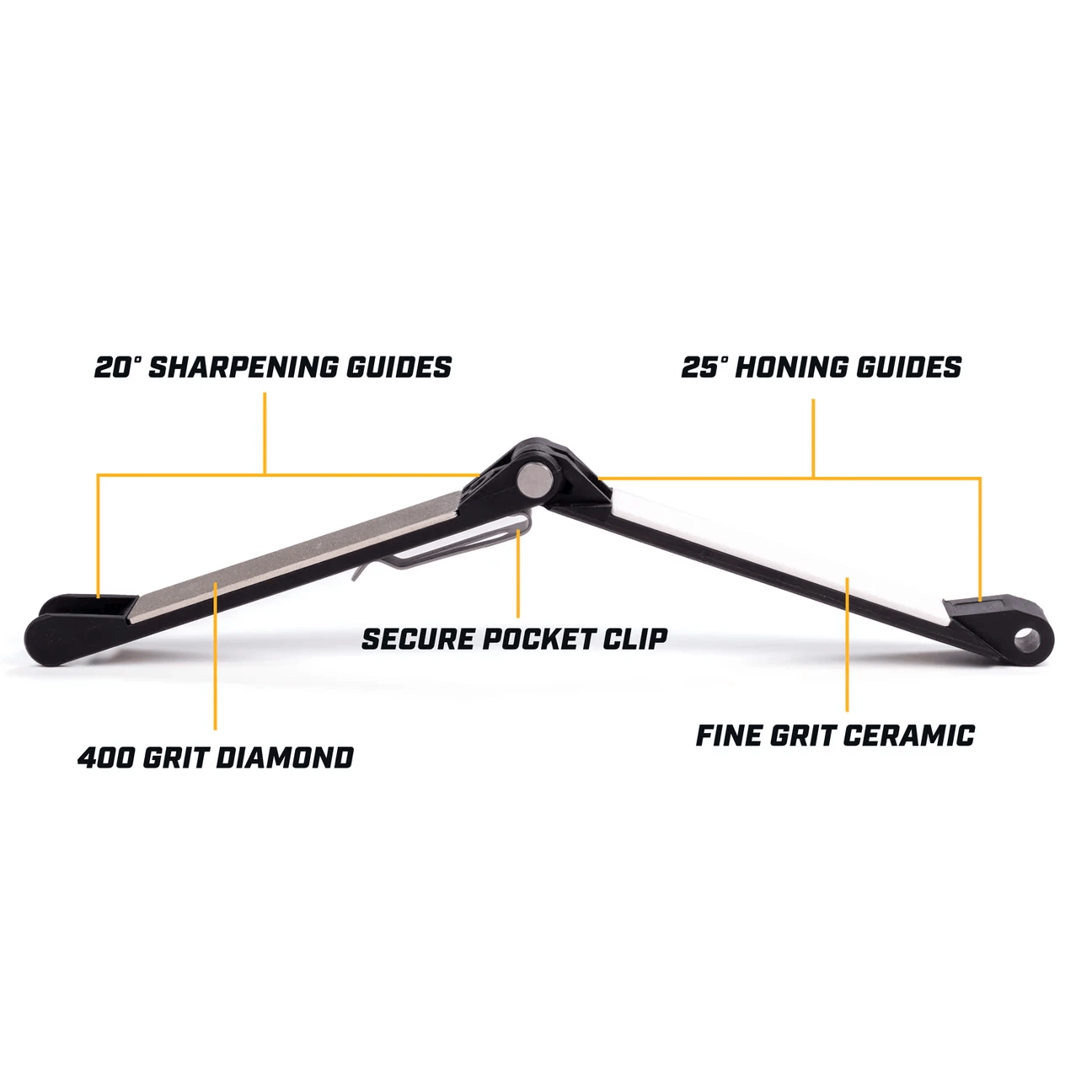 Robustna in hkrati lahka konstrukcija se zloži v žepni format, ki ga s sponom zlahka pripnete na žep, nahrbtnik ali telovnik. Gre za praktično orodje za lov, ribolov, pohodništvo in vsakodnevno rabo, kadar koli morate hitro povrniti ostrino svojim nožem.