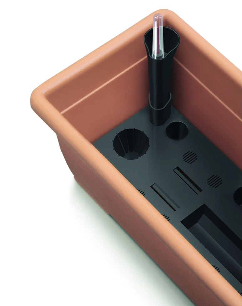 Integrirani samonamakalni sistem vzdržuje zalogo vode na dnu posode, zato imajo rastline vlago na voljo postopoma, glede na potrebe. Tako se zmanjšuje pogostost zalivanja in izboljšuje vitalnost rastlin, zlasti v vročih dneh. Sistem je primeren tudi za hidroponsko gojenje, kar olajša nego začetnikom in izkušenim gojiteljem.