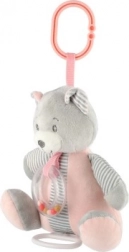 Naš nategovalni plišasti medvedek je zasnovan tako, da otrokom nudi toplino in udobje. Glasbeni mehanizem v notranjosti medvedka predvaja nežno melodijo, idealno za uspavanje. Plišast material je mehak in nežen do otroške kože. Igrača je opremljena z ropotuljico pri vratu, ki ob gibanju oddaja zvoke in spodbuja slušno zaznavo. Zahvaljujoč praktični sponki lahko medvedka zlahka pritrdite na posteljico, voziček ali avtosedež, kar je idealno za uporabo doma in na poti.