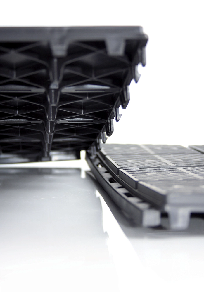 Teksturiran vzorec zagotavlja varen korak tudi, ko je mokro, spodnja mreža pa podpira kroženje zraka in odvod vode.