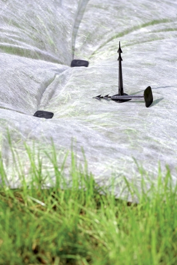 Ostra konica in profil z zobci/harpuno omogočata lahko zabijanje tudi v bolj zbito zemljo, medtem ko protizobci preprečujejo izvlek in držijo tekstil trdno na mestu.
