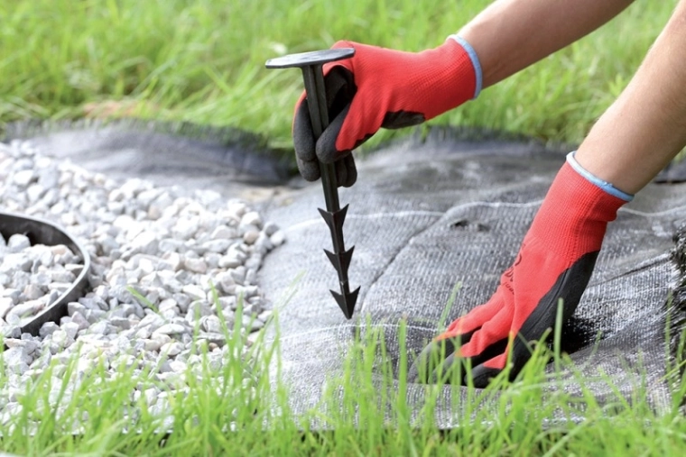 pritrditev zastirne tkanine, geotekstila, folij in nevidnih robnikov