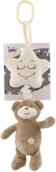 Ta prisrčna viseča igrača združuje medvedka s kremno zvezdico, v kateri je skrit glasbeni mehanizem. Po navijanju medvedka zazveni prijetna zibanka, ki dojenčka umiri in podpira mirno uspavanje doma in na poti.