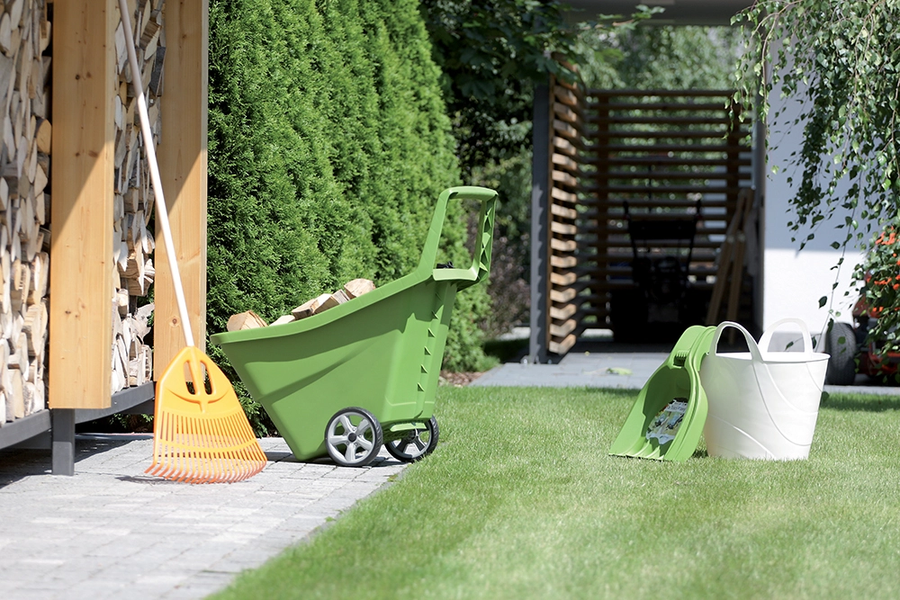 Vrtni voziček LOAD & GO III je idealen pomočnik za redno vzdrževanje vrta. Ponuja veliko prostornino 95 litrov, nizko težo in odporno plastično konstrukcijo, ki se zlahka čisti. Zahvaljujoč visokemu integriranemu ročaju in dvema robustnima kolesoma brez napora prevaža listje, zastirko, zemljo, veje ali drva.