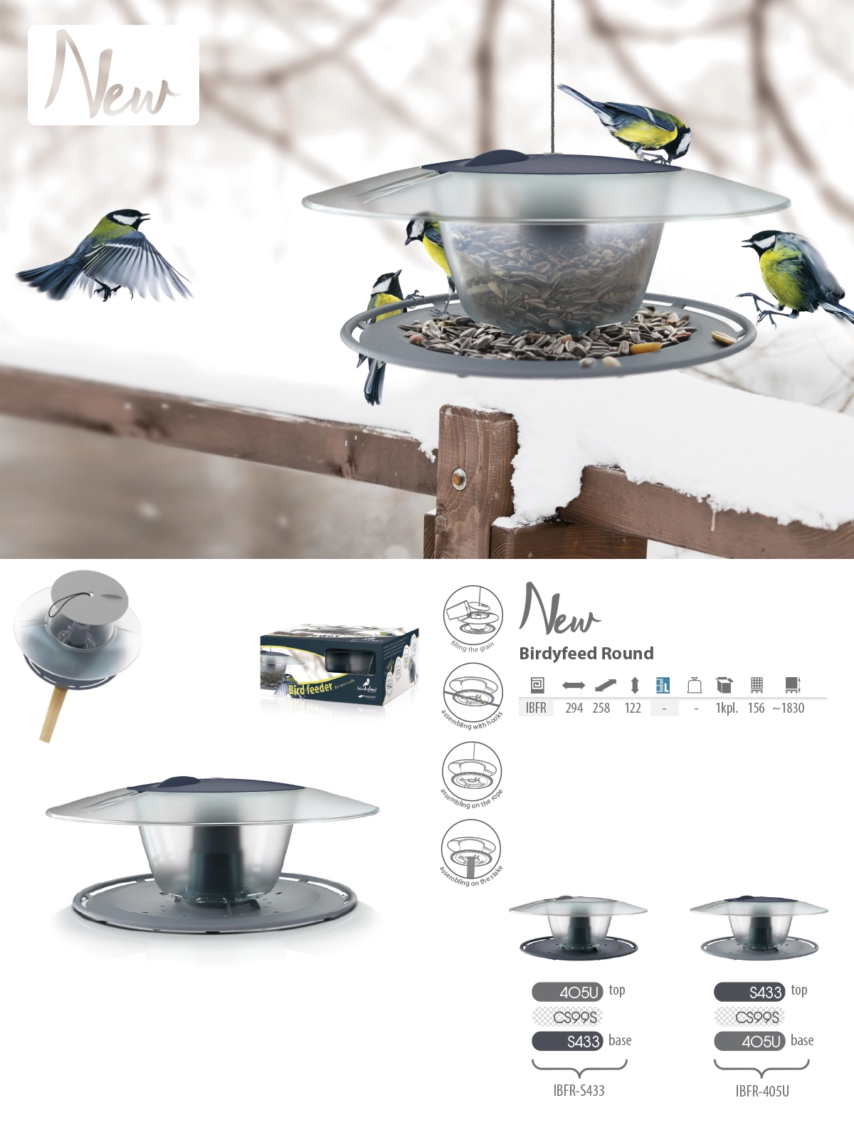 Spremenite hranjenje prosto živečih ptic v prijeten obred. BIRDYFEED Round združuje sodoben videz s funkcionalno zasnovo: prozoren vsebnik omogoča stalen nadzor nad zalogami, poševna okrogla strešica pa ohranja krmo suho tudi v slabem vremenu.