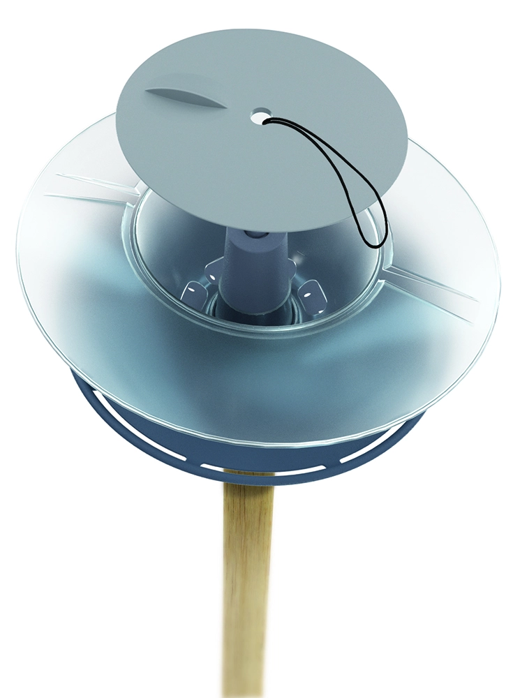 Praktična krmilnica za vrtne ptice z odporno konstrukcijo iz plastike in kovine. Velik vsebnik sprejme različno velika zrna in privablja širok spekter ptic. Poševena okrogla strešica ščiti hrano pred dežjem in snegom ter zagotavlja njeno suhost in čistočo. Zahvaljujoč odstranljivi strešici je dopolnjevanje enostavno in hitro, več možnosti montaže pa omogoča prilagodljivo postavitev na vrtu.