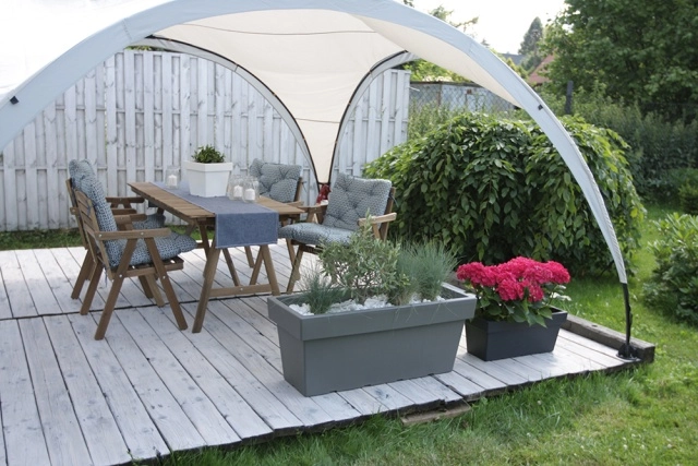 Čiste linije in sivi kamen se zlahka ujemata s pohištvom in dodatki. Ustvarite si stilski kotiček na balkonu ali vrtu.