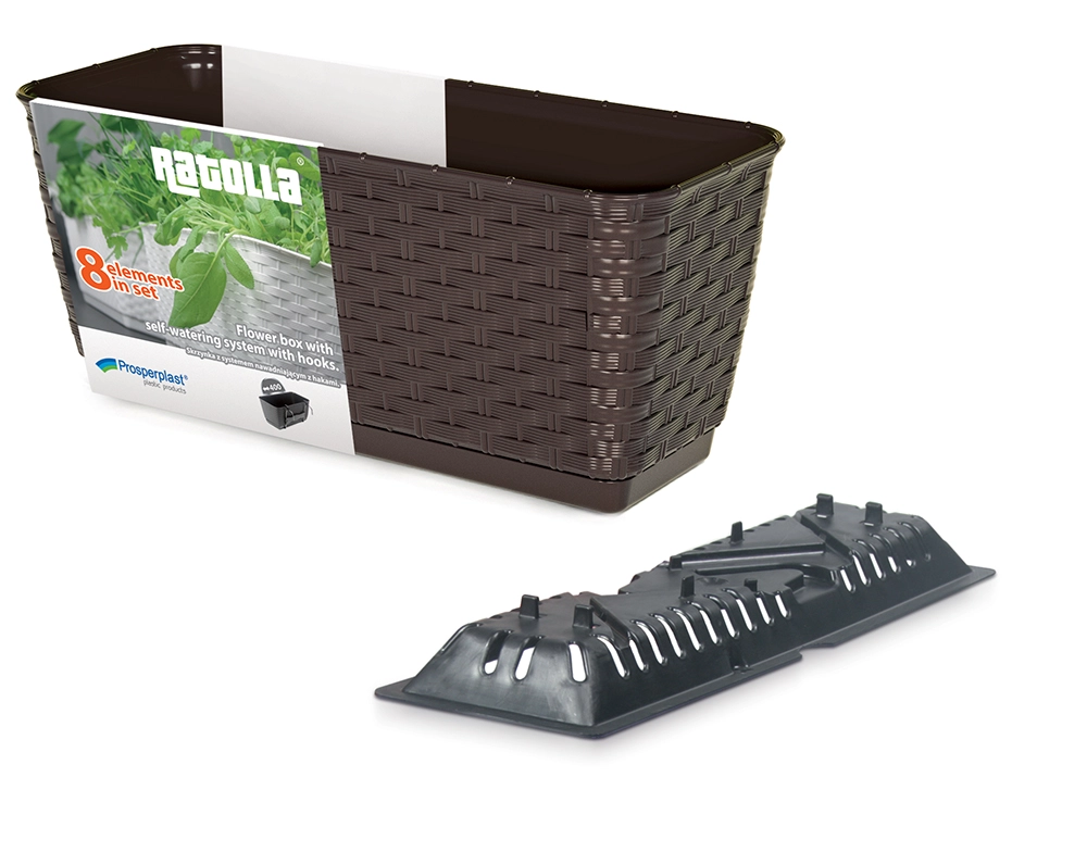 Stilsko korito RATOLLA PW v barvi mocca združuje privlačno imitacijo ratanove pletenine z visoko funkcionalnostjo. Izdelano je iz odporne plastike, zato odlično prenaša dež, sonce in temperaturna nihanja. Zahvaljujoč priloženim kljukam ga hitro in varno obesite na večino balkonskih ograj brez dodatnih posegov.