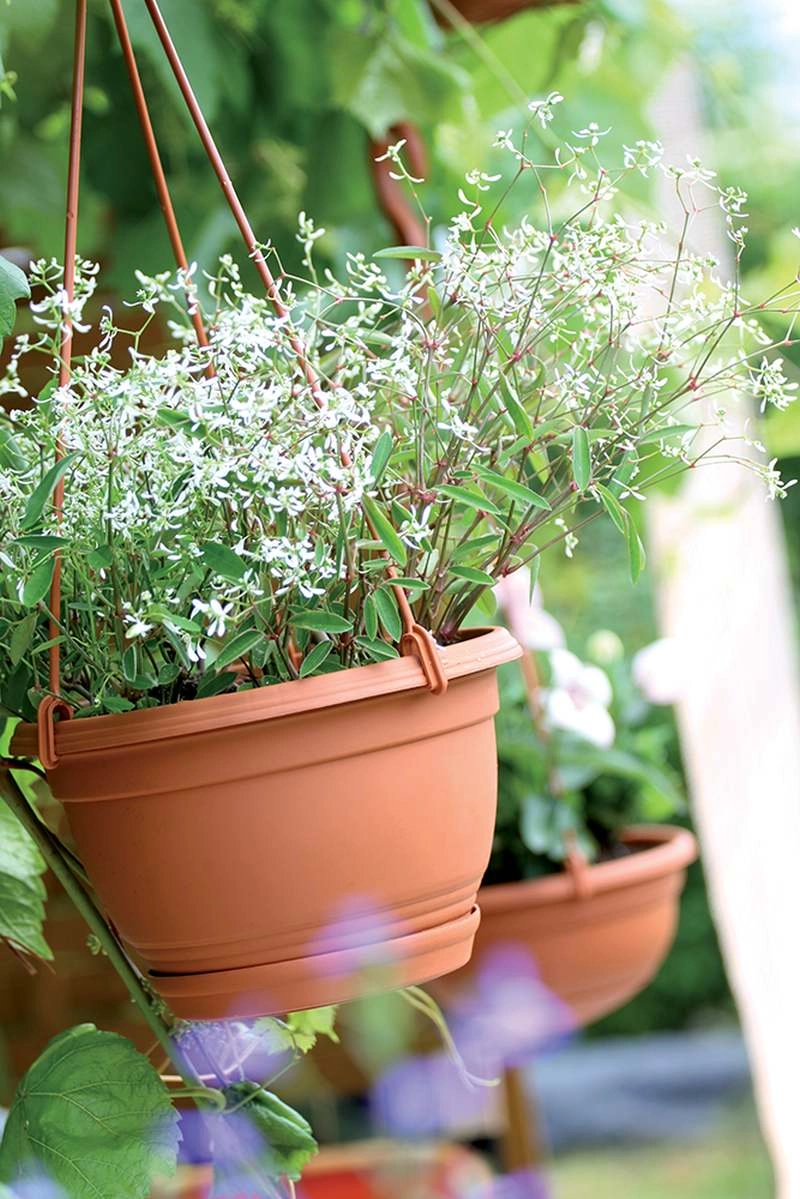 Stilski viseči cvetlični lonec v terakotnem odtenku s premerom 21 cm je idealen za gojenje priljubljenih balkonskih rož. Ponuja odporno plastiko, praktičen kavelj za enostavno obešanje in integrirano podstavno posodo za udobno vzdrževanje. Odlično se poda na balkon, teraso in v paviljon ter ustvari prijetno vzdušje.