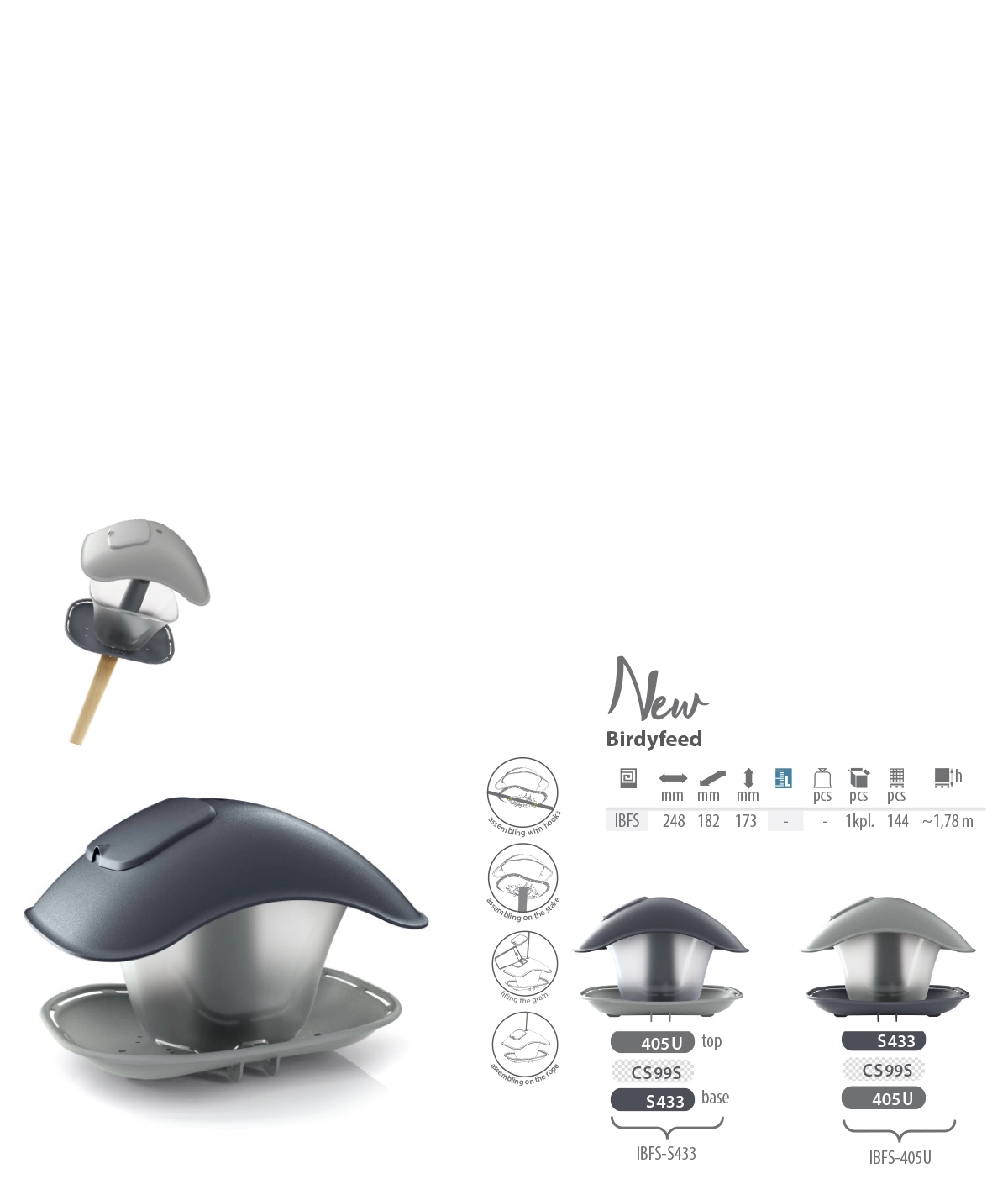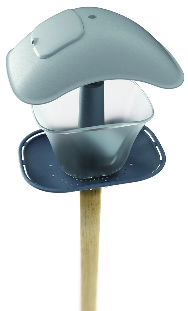 Poševna strešica v antracitni barvi učinkovito senči in ščiti krmilo pred vlago, da ostane sveže in privlačno za ptice.